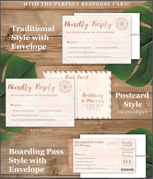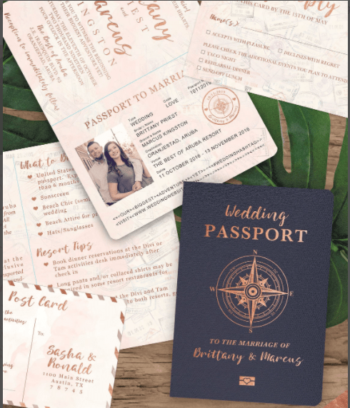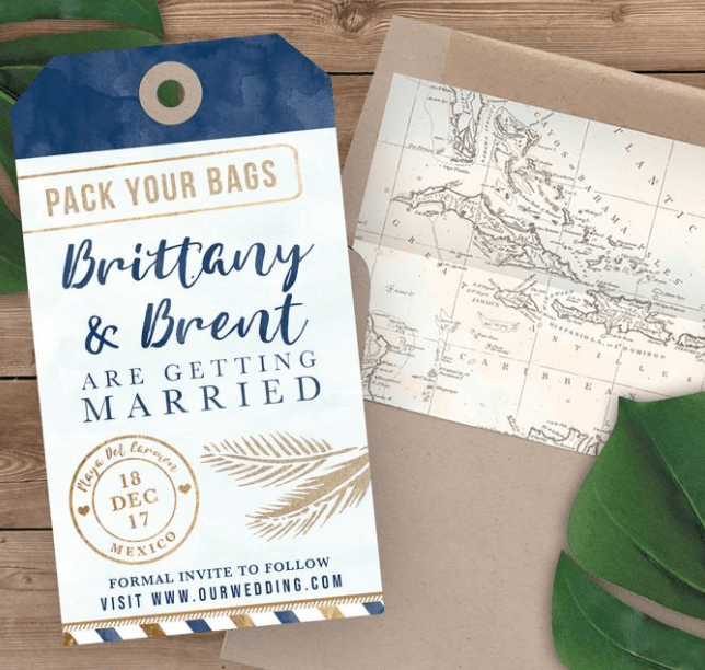 I will admit here that I started leaning towards destinations weddings because I liked the idea of possibly getting a wedding and a honeymoon in one. I am not leaning towards that as much anymore mostly because my husband to be (whoever he is) may not want that or may want to destination somewhere and honeymoon in another. Both of these things are fine with me. The other thing that started me to leaning towards destination weddings is the very awesome invitation ideas. (I enjoy getting things in the mail and there is a huge bonus when those things are awesome. ) There are a few that I have picked out for the destination wedding which is or will be mine. Here is where not doing the reading for your college class and looking through pinterest has paid off.