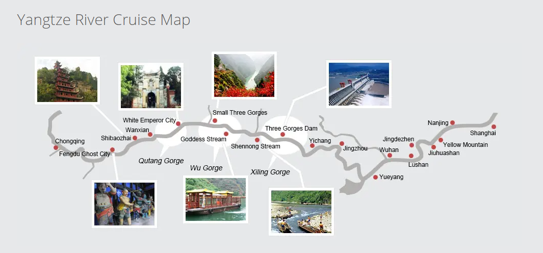 - From Shanghai to Chongqing (upstream) takes eight nights and nine days.