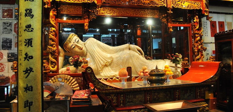 - Enter the Jade Buddha Temple to see the white jade statues of sitting Buddha and reclining Buddha.