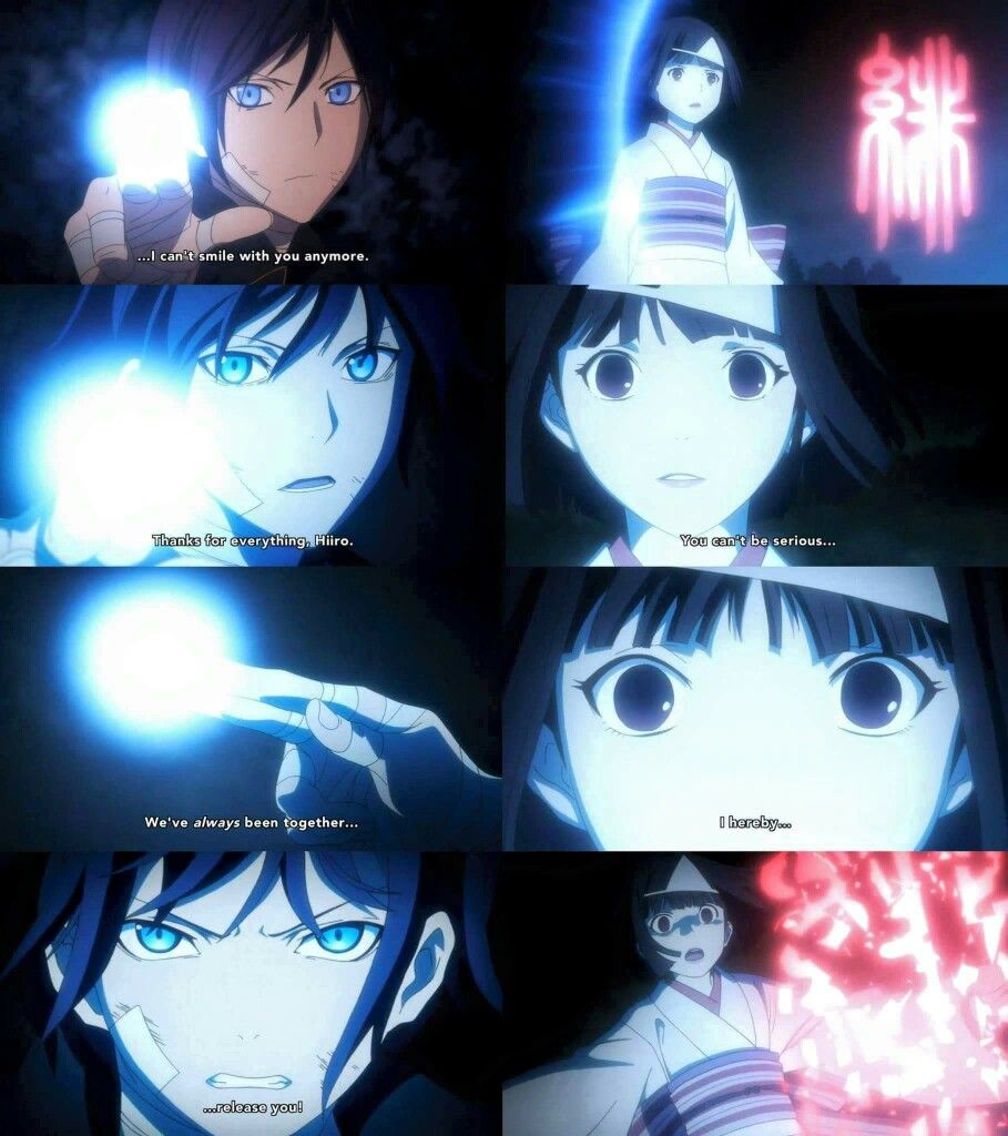 - Yato releases Nora – As a Stray, Nora has multiple owners and thus, multiple names. She also takes on different forms when different masters summon her. As one of her long-time users, she is fond of Yato and often seeks the chance for Yato to use her again. Talk about toxic relationship. Yato attempts to break the cycle but whenever Yato leaves Nora, she often disturbs him and his emotions, taunting him so that he returns to her. She feels happy whenever Yato returns to using her while disregarding his feelings. In the beginning, (before the ablution) since Yukine is close to Yato, Nora used to taunt Yukine into hurting Yato. She also brags about her skill and how even though she wasn’t a blessed vessel, she could still do more than Yukine. She feels happy whenever Yato returns to using her while disregarding his feelings. Later on, Yato finally releases her of being his Shinki. He is sick of her constant manipulation and the event with Ebisu is the final straw. She previously teamed up with Rabo to kill Hiyori.She normally lures him into situations without telling him that the other people there are also her masters leaving him at a disadvantage. Nora was noticeably infuriated with being let go. For some reason, she didn’t see that coming. No one was more happy than me that he kicked the little wench to the curb.