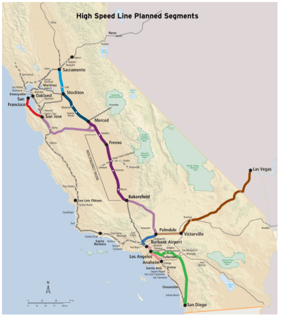 High-speed trains can cut the travel time between Los Angeles and San Francisco by half, compared to driving. A combination of local and express trains will serve more than 15 cities on the main trunk line, forming the backbone for a much larger transportation system. By connecting the high speed backbone to California’s extensive network of trains and buses, it will link hundreds of cities across the state. The California High Speed Authority estimates that the state would have to build 4,300 miles of new highway lanes and 115 new airport gates to equal the passenger capacity of the new high speed rail line.