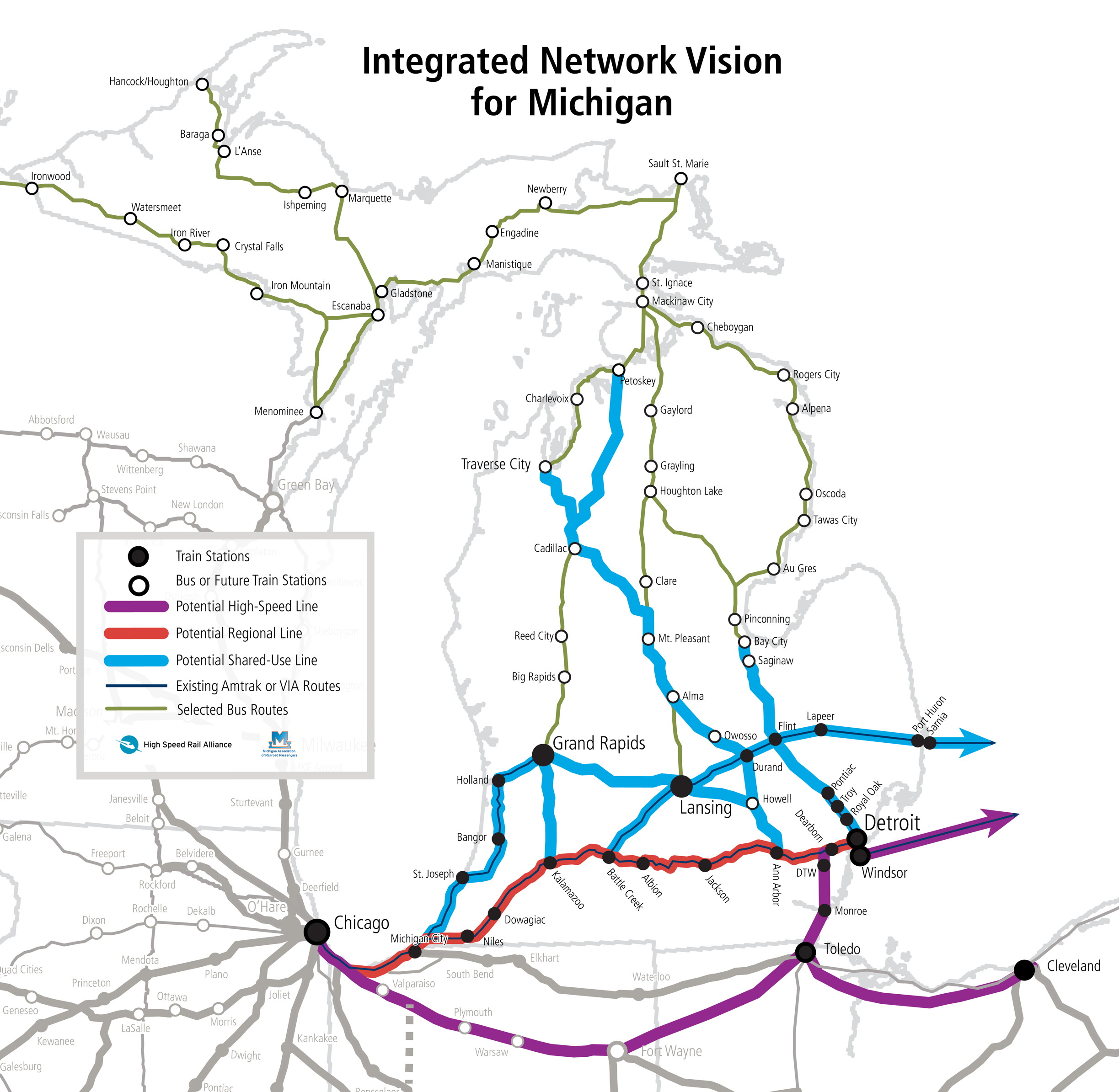 Michigan – Michigan needs a gold-standard rail network that shows the power of trains to drive economic development and promote environmental sustainability. Trips to every part of the state—as well as Chicago, Cleveland and Toronto—should be fast, affordable, and convenient. About 80 percent of Michigan lives within 25 miles of an Amtrak station; 85 percent live within 50 miles of one. That population density near train stations means Michigan’s railroads are a remarkable, but under-utilized asset.