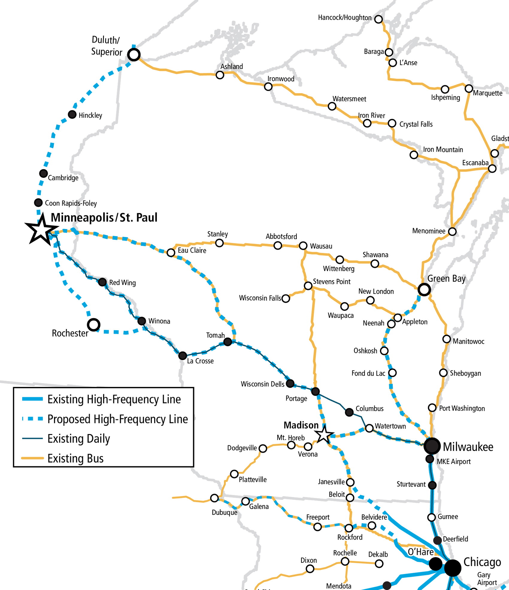Wisconsin – Cities across Wisconsin—including Green Bay, Madison, Eau Claire, and LaCrosse—are pushing for new or upgraded Amtrak lines to their communities. Residents are already using the Empire Builder to move around within the state, even though it offers just one round trip per day. Wisconsin already has a great foundation for creating a game-changing passenger rail network. Faster trains and more frequent service will build support for an expanding network that ties the state together and helps support our tourism industry.