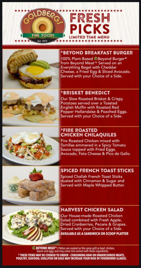 For those of you that don’t know… (I didn’t). Goldberg’s Bagel Company & Deli, originally named Goldberg & Son, started in 1972 as a small true father-and-son run Atlanta deli serving six varieties of authentic New York-style bagels. It became a very popular traditional New York deli. Goldberg’s has expanded its menu offerings to include a wide range of breakfast and lunch items, bagels are still at the heart of the company. That’s why Goldberg’s staff continues to bake more than 500 dozen bagels every weekday and more than 1,000 dozen on the weekends.