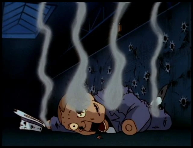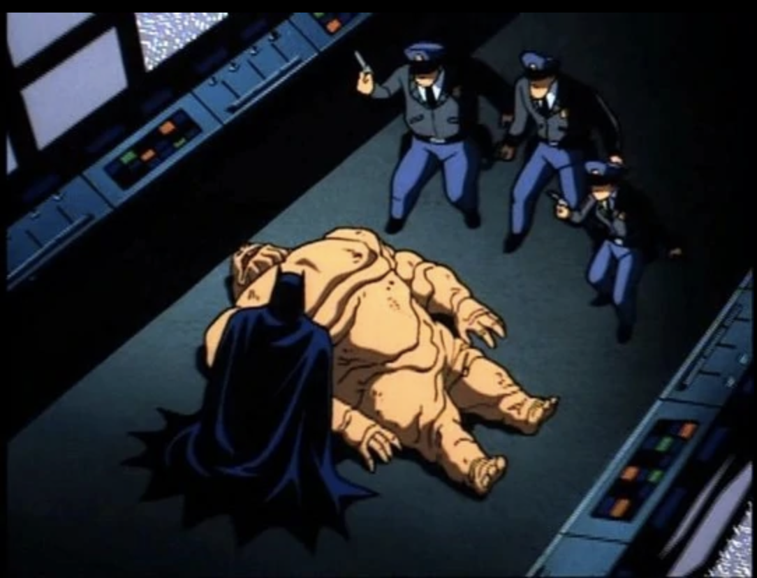 - The Man Who Killed Batman – It is one of the few episodes that doesn’t feature Batman as the main character and instead it focuses on Sidney Debris, a new character created exclusively for this episode. Sidney Debris was acting as look-out for drug-runners when Batman showed up. The two struggled, and Sid’s bumbling causes Batman to fall off the roof and into a shed of explosive gas. After the ensuing fire, the only thing found was Batman’s cape and cowl. It seemed Sidney had done the impossible and become the man who killed Batman. In prison, Officer Montoya learns from Harvey Bullock about the supposed death of Batman at the hands of a master criminal called “The Squid”. Renee is in shock and Harvey tells her to go talk to Gordon and try to help him cope with the news. Harvey wonders if any of the people they caught at the pub know something about the case. Harvey asks Sid about it, but before he can answer, a woman comes into the place and demands that Sidney Debris be set free as she paid his bail out of jail. The woman introduces herself as Harleen Quinzel, Sidney’s lawyer. Harvey seems to recognize the woman but he is unable to make the connection. When Harleen and Sid are finally out of jail, Sid asks her who was the person that bailed him out. She didn’t answer and instead she starts powdering her face. After a while, she is done with the makeup and Sid recognizes her as Harley Quinn, the woman that works for the Joker. Harley takes Sid to Joker’s hideout and the clown prince of crime greets the man who killed Batman. Joker tells Sid that they are going to make sure that Batman has meet his final destination. Joker and his people break into a jewelry and they take Sid with them. They are going to wait until Batman shows up. As time passes, the GCPD arrive and surrounds the building but there is no sign of Batman. Joker starts to worry about the situation and he finally comes to the conclusion that Batman was in fact dead at the hands of Sid; which makes him completely sad. Using some of his Joker laughing gas, they escape the place without taking anything. (Poor Joker?) Joker takes Sid to the Ace Chemical Processing Plant and starts a funeral ceremony for Batman. With the cape and cowl placed inside a coffin, Joker begins his eulogy. Before finishing his speech, Joker blames Sid for all the damage he has caused him by killing Batman. Joker tells his henchmen to put Sidney in the coffin and locks him inside, and the coffin is sent on a conveyor belt towards a vat of acid. The acid is getting inside the coffin and Sid can’t escape. It all seems to be lost, but in a few seconds, the coffin breaks open and Sid realizes that he was outside the plant, nearby the river. Sid’s first thought is to look for help from Thorne himself and so he finishes his story. Thorne is amazed to learn that Sid is just a victim of consequences. Sidney wants to get out of Gotham but Thorne comes to the conclusion that Sid is actually a mastermind that wants to steal his drug racket and prepares to kill Sid. Some noises come from outside and after a while, Batman enters the room. He disarms Thorne and beats him to a pulp. Sid is shocked to see Batman alive and Batman explains that he managed to escape from the explosion just moments before. Sid was glad to know he was innocent of murder and tries to leave the place but Batman reminds him that he is still an accomplice in the drug deal. Sid was afraid to go to prison but Batman changed his mind. At Stonegate Penitentiary, Sid “The Squid” is cheered by all the inmates for almost killing Batman, setting up Rupert Thorne, and making a fool out of the Joker. A pleased Sidney realizes that he is finally a “big shot”.