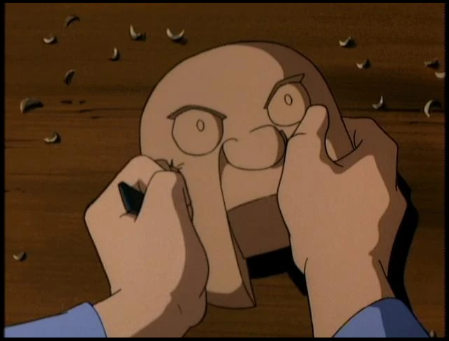 - Read My Lips – This is an episode that is notable for introducing The Ventriloquist and Scarface to the series. Gotham Police are baffled by a series of crimes executed with clockwork-like precision. Batman investigates and discovers that the crimes are planned by a mob boss known as Scarface. He traces Scarface to his lair — a deserted mannequin warehouse — and discovers, to his astonishment, that the crime czar is a wooden dummy, manipulated by a mild-mannered man called the Ventriloquist. There is a robbery after a great boxing match between Dynamo Dave and Mad Dog Ted, at the Gotham Square Garden by a very organized gang. After their first successful crime, the leader of the band tells them that they are going to own Gotham City. The following weeks, all the news are related to the crime spree and it seems like the Gotham City Police Department can’t figure out a way to stop the new gang in town. At the Batcave, Batman identifies one of the perpetrators as Rhino. Batman follows Rhino on the streets and confronts him in a dark alley about the latest crimes and also questions him about his boss. Rhino is not giving Batman any answer and instead he fights the dark knight. Batman follows Rhino to the secret base of operations to learn who is the mastermind behind the crimes. Batman watches as Rhino tells an old man to get the boss because he has important news for him. The man goes to get the boss, who is sleeping. The old man comes back to the main room, where Rhino and is waiting with Ratso and Mugsy, the other gang members. The boss speaks to them in an angry way for waking him up when he has gone to bed, but Batman is surprised to see that the “boss” is actually a ventriloquist dummy that calls himself Scarface, because of the “scar” on its face, and is controlled by the old man, called Arnold Wesker; or The Ventriloquist as he is known among the gang. Scarface asks them what is so important that they needed to wake him up and one of the thugs starts talking to the Ventriloquist, which makes Scarface angry. The dummy wants to be talked to him and not to the “hired help”. Batman sneaks into Scarface’s bedroom and examines the dummy, which is laid in a very fancy bed and the room itself is very ostentatious. The dummy opens its eyes and Batman is scared at first but then he closes the eye lids again. At that point, the Ventriloquist comes into the room to make sure that Scarface is alright and Batman grabs him from behind and pulls him back to his bedroom, which Batman notices is much smaller and poor in comparison. Batman wants some answers, but Wesker is completely honest when he tells Batman that Scarface is the brains of the gang and that only he knows the location of all the stolen goods. Then, somehow, Scarface calls for the Ventriloquist from the other room and the man, completely scared of what Scarface might do to him if he learns that Batman is in the room, answers his boss’ call. Back in the Batcave, Batman shows Alfred the skills of the Ventriloquist in voice throwing and changing voice tones with help of the microphone. Alfred is amazed to learn that Scarface and the Ventriloquist are the same person and Batman explains that even the Batcomputer is confused. Batman himself knows a bit of ventriloquism. Batman also deduces that Wesker suffers from multiple personality disorder and that Scarface and The Ventriloquist are in fact two different persons in the same body. (The first time I heard about multiple personality or DID. I really thought it was made up for this show.) Rhino and the other two men go to the ship and get inside it to steal some of the platinum just as Batman arrives and tries to stop them. Batman takes the man driving the boat and then he attacks Rhino before going for the last man standing However, Rhino recovers fast and pushes a pile of platinum bars on top of Batman, knocking him down. After a while, Batman recovers consciuosness and he finds himself hanging above some spikes carved out of old mannequins. Scarface talks to Batman and tells him that the robbery of platinum was a trap from the beginning since The Ventriloquist told them about his encounter with Batman and Scarface found the bug on the bow tie. To make some time, Batman tells Scarface that one of his gang members told him about his secret place and Scarface believes him since he had a hunch of a double-cross. Scarface is not sure of who could it be and Batman tells him that it is The Ventriloquist. Wesker turns Scarface to face him and he starts having a discussion with the dummy. (It is one of the oddest Batman scenes I have ever watched.) Batman uses his own ventriloquism skills and says some offensive words to Scarface in the voice of Wesker, which only makes the mob boss angrier. He tells the henchmen to kill Wesker, but they aren’t sure of it since without The Ventriloquist, there would be no Scarface. During all that time, Batman unties himself and tosses a Batarang to Scarface, taking off his hand and preventing him from Killing Wesker. The Ventriloquist to drop Scarface and at that moment, one of the thugs picks up the machine gun and starts shooting at Batman, where there was also the Scarface dummy. Batman gets cover behind the fallen shelf and the Scarface dummy is shot and completely destroyed in front of The Ventriloquist, who screams in desperation. When the shooting stops, Wesker gets near the broken doll and cries over his “dead boss”. The Ventriloquist is taken to Arkham Asylum and some time later, the doctors think that Wesker is making progress and has left his other personality in the past. However, during the crafting sessions, The Ventriloquist have been carving a new dummy.