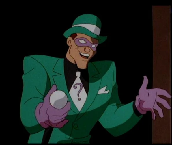 - If You’re So Smart, Why Aren’t You Rich? – The episode is notable for introducing to the series the classic Batman enemy: The Riddler; in a story that contains similar elements from the character’s first comic book appearance. After being fired from Competitron; Edward Nygma takes over the identity of The Riddler in order to get vengeance over his former boss Daniel Mockridge. I so enjoy the Riddler and I love this episode mostly because Mockridge is a tool. Edward Nygma arrives at his office at Competitron and finds that his nameplate has been removed and that he has been fired by his boss, Daniel Mockridge. Nygma tells him that the company owed him the prestige for developing the game of the Riddle of the Minotaur, but Mockridge tells him that the game was owned solely by Competitron. Clearly, he wants to keep the funds all to himself… although their isn’t much Nygma can do for himself since he signed a contract. Furious, Nygma tells him that he is nothing compared to a mastermind like him, to which Mockridge replied, “If you’re so smart, why aren’t you rich?” Two years later, Mockridge tries to sell his products to Wayne Enterprises in order to expand his market into Gotham City. Lucius Fox and Bruce Wayne listen to the man but they notice that Mockridge is suddenly distracted with a billboard outside of the window. When they turn, they see a stock update screen addressed to Mockridge, written in a riddle and saying something about a wasteland. Mockridge loses his nerve and leaves the building without any explanation. Later that night in the Batcave, Bruce still ponders the solution to the riddle while Dick plays the “Riddle of the Minotaur” game. Alfred comes in with their suits and stays a while, trying to understand the game. When Dick says that his character has been trapped in the wasteland, Bruce realizes that Mockridge owns a bar in Gotham called The Wasteland. Mockridge arrives at “The Wasteland” and he finds Edward Nygma sitting on his desk. Mockridge warns him to stay away from him, but Nygma tells him that he has an offer to make. Nygma tricks Mockridge and traps him with some trick rings. At that moment, Batman and Robin arrive at the place and Nygma comes out to meet them. He introduces himself as The Riddler and Batman asks him if it was a pun on his real name. Batman and Robin fight Riddler’s henchmen and then Riddler starts a fire in the place. Batman had to decide whether to follow Riddler and save Mockridge or stay and save Robin from being burned. Batman chooses the latter and by the time they escape from the burning building, Riddler and his men were gone. Batman and Robin drive in the Batmobile when they realize that the city lights are flashing in a strange pattern. Batman deduces that it is Morse code and uses the computer on his gloves to decipher the message. Riddler is manipulating the lights from Gotham’s Lights Power Plant. The message was a riddle relating something that was “as high as an elephant’s eye”. Batman solves the riddle and goes to the place were the Riddler is leading them; The Riddler of the Minotaur amusement park that featured a maze as part of its attractions. They have only 10 minutes to find the center of the maze and when their time starts to run out, Batman decides to use one of the traps in his advantage. Using “The Hand of Fate” as a vehicle, Batman and Robin arrive at the center of the maze and answer the last riddle. They free Mockridge but Riddler tells them that they must survive the attack from the minotaur and the robot minotaur comes to life. Batman uses the hand of fate and destroys the minotaur. Riddler, while unhappy with the results, is yet relaxed because at that precise moment, he is far away from their reach. In the aftermath, Wayne Enterprises acquires Competitron, but Dick is still bitter that Mockridge made millions out of the buyout and got away. Bruce, however, is strangely satisfied, noting that the Riddler is still at large and he wonders how well Mockridge is coping with the unfortunate events. Mockridge is living in a constant state of fear and paranoia and, because of his guilty conscience, cannot sleep well at night. (“How much is a good night sleep worth anyway?”)