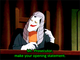 - Trial – One of my favorite episodes because it features most of the rogues gallery. Gotham’s deadliest criminals, The Joker, Two-Face, Mad Hatter, The Ventriloquist, Harley Quinn, Poison Ivy among many others, kidnap Batman and put him on trial in Arkham Asylum. The Dark Knight’s only hope rests with District Attorney Janet Van Dorn who, despite her anti-Batman stance, is forced to defend the Caped Crusader’s life as well as her own. At Gotham’s courthouse, Poison Ivy stands on trial and is sent back to Arkham Asylum since she was captured by Batman and not by an official law enforcer. D.A. Janet Van Dorn is upset at the outcome because she wanted Ivy to be sentenced to life in prison, and she blames it all on Batman. Upon arriving at Arkham, Ivy meets Harley, who tells her that they’re about to start something big in the asylum and just as she says that, two guards appear in front of them with some strange cards on their hats. They’re being controlled by The Mad Hatter. A few hours later, Janet goes on a date with Bruce Wayne and they meet in a fancy restaurant. They start discussing the Batman issue and Bruce tries to change her mind about it, but they’re interrupted by an important call from Janet’s office. She goes to answer the call, but after half an hour later, she doesn’t come back and Bruce starts worrying about her. Back at the GCPD HQ, Gordon gives Batman a note telling him to go alone at the Gotham Courthouse. Moments later, Batman goes to the arranged place and Poison Ivy uses her crossbow to attack Batman from behind and when he starts feeling weak Harley attacks him. Janet is being held in a cell of some sort of prison and she demands to be set free. Suddenly, Two-Face enters the cell revealing to Janet that she is in Arkham and then Batman is taken inside, carried by Killer Croc and in a straightjacket. Two-Face tells them that Batman is going to be on a trial in Arkham and that Janet is going to defend him if they want to survive. They’re taken to the main hall where the trial is being held and The Ventriloquist, acting as bailiff along with Scarface, introduces the prosecutor, Two-Face; the accused, Batman; the defense attorney, Janet and the jury : Killer Croc, Mad Hatter, Poison Ivy, Harley Quinn, Scarecrow and The Riddler. Lastly, the judge Joker is introduced. (There is no way he will get a fair trial in Arkham… or one would think. Who would want the joker as their judge?) One by one, the members of the jury are called to testify and Van Dorne does her best to prove that they are criminals because of their own twisted minds and not because Batman caused them to turn into criminals. Each one of them fall short and all the evidence shows that in fact, they would have turned into criminals one way or another. Hatter’s testimony gets him excused for saying something he was not suppose to say, (“I would’ve killed her first.” in response to being asked why he didn’t just respect Alice’s decision to not date him. Creepy. And still very relevant today.) Harley starts flirting with Joker and gets kicked out, and Ivy sends a dig at Two-Face which gets a rebuke from him but she breaks when Van Dorne pushes her buttons and rips up Joker’s flower. In the end, Van Dorne concludes that Batman didn’t create them, but instead it happened the other way around. After hearing all the testimonies, the jury comes to the conclusion that Batman is not guilty of making them the way they are, which amazes Batman and Janet. Joker congratulates Janet for successfully defending Batman, but reveals that since they are already crazy by themselves, they might as well kill the two of them after all. The Arkham inmates take Janet and Batman to a dark cell, where they put Batman on a security bed and tie him to it. Joker walks towards him and before eliminating them, he wants to take off the cowl from Batman to know the identity of the man behind the bat. Janet remembers that she kept the batarang with her the whole time and tosses it to the only light bulb in the room, leaving it in complete darkness for a few seconds. In the dark, Batman escapes from the restraints and starts taking them out one by one and he starts by pulling out Harley and tying her upside-down with the straightjacket. Batman grabs Janet and they try to escape the asylum, filled with lunatics and mind controlled orderlies. On their way out they come across Scarecrow and on the other end they are trapped by Ivy, Hatter, and Scarface. Scarecrow uses his scythe but he misses and decapitates Scarface instead with Ventriloquist having to put him back together. Batman manages to outrun them and he leads Janet as far as he can from the psychopaths. However, they find themselves trapped in a dead end hallway, forcing Batman to use his Grapple Gun to get them to the rooftop from a skylight. The psychopaths are left cornered in the dead end and at that moment, the GCPD enters the building and captures all of them. After all the inmates are back on their cells, Janet Van Dorn admits that Batman is much needed in Gotham, but she warns him that she will still work for a city that doesn’t need Batman.
