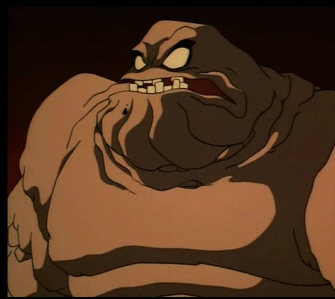 - Feat of Clay 1 & 2 – Roland Daggett is a turd. And I thought that as a kid. TURD. Bruce Wayne is framed for the attempted murder of Lucius Fox. The real perpetrator is an actor and master of disguise named Matt Hagan, who was disfigured in a car accident years ago. Matt Hagan starts doing sketchy jobs for Daggett in order to get his hands on a monthly supply of an addictive face cream known as Renuyu (a pun on “Renew You”) that can temporarily reshape his face back to normal. For botching the murder, Hagen’s supply is cut off, and poor Hagan goes through a side bout of withdrawal. When he breaks into Daggett’s lab for more Renuyu, he pays the price dearly when Daggett’s men drench his face in the formula and force him to swallow liters of it. Matt is not okay and Bruce is locked up for the attempted murder. Matt’s overdose saturated every cell in Hagen’s body, altering his appearance to a bulky and misshapen clay-like form who can, for brief periods of time, shapeshift into anything or anyone he intends. Clayface subsequently attempted to get revenge on Daggett. He posed as an overweight woman in the audience of a talk show where Daggett was promoting Renuyu (after being released on the market) and then morphed back into himself to try and kill him. His efforts were stopped, however, by Batman using footage of Hagen’s old movies to remind him of who he was, and thusly, what he has become. Clayface relents, and just prior to his capture by the Dark Knight, fakes his own death.