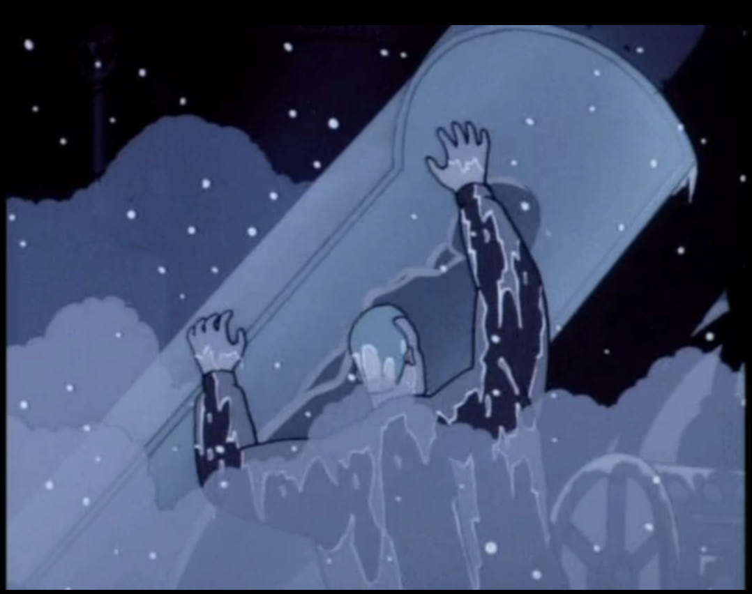 - Heart of Ice – Enter the start of Mr. Freeze’s tragic backstory. (Freeze is one of my favorite characters in this series. You find out that a lot of the villian have turned to crime after they were done wrong. Revenge should be Mr. Freeze’s middle name.) Freeze is out for revenge on behalf of his wife (which he usually is.). This is the start of his story. Victor Fries was a scientist working at GothCorp. His wife, Nora, diagnosed with a terminal unspecified illness. It is sad that they don’t seem to know how to cure her. Victor is just a doting husband trying help his wife. Victor started experimenting with cryogenics using GothCorp’s funds. Was this wrong…? Totally. Did he deserve what happens next? NOT AT ALL. When the CEO of GothCorp, Ferris Boyle, learned of Freeze’s experiments, he decided to shut them down. Not caring what happens to Nora… Boyle broke into his laboratory, destroyed most of his equipment and kicked Fries into a batch of chemicals, leaving him to die. (But this is a kid’s cartoon…. and an origin story… so no one dies.) Freeze makes it out alive although he can no longer survive outside of cold temperatures. (Sub Zero). He built a cryo-suit that kept his body at low temperatures and also tripled his normal strength. He also built a freeze gun to start a criminal campaign against GothCorp and Boyle. Mr. Freeze made numerous break-ins on GothCorp, stealing parts for a giant freezing gun. While Batman intervenes throughout the episode (I remember a henchman getting shot with the gun accidentally, Freeze with his cold hearted self wants to leave the guy behind… It is Batman who helps the guy.) The ending culminates in Freeze confronting Boyle at his Humanitarian Ceremony. (Imagine believing you killed to people and getting a humanitarian ceremony.) Batman challenged Freeze at the party, fighting him one-on-one until he broke Freeze’s helmet with a flask of chicken soup. Freeze was defeated, and detained along with Boyle, as Batman presented evidence of Boyle’s crimes to the press. Victor Fries was incarcerated in a special cell in Arkham Asylum.