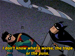 - Harlequinade – This was such a funny episode right up until the end… I am not of fan of the weird romance between Joker and Harley… but both of them are delusional so…. yeah. The Joker gains possession of an atomic bomb which he uses to threaten Gotham City; forcing Batman and Robin to form an uneasy alliance with Harley Quinn in order to stop the Clown Prince of Crime. Harley leads them on a hunt through Gotham, and eventually into a deadly show-down where Harley is torn between her promise to help Batman and her twisted love for the Joker. A gangster meet up is happening in a secret warehouse and the leader is selling an atomic bomb to the highest bidder. From the shadows of the warehouse, Joker comes in and tells the thugs that he is taking the bomb and paying nothing for it. The gangsters pull out their guns and point them towards Joker, who in turn pulls out a bomb from his hat. The thugs run away in fear of Joker’s bomb triggering the atomic one and only the leader stays in. Joker tosses the bomb to him but instead of exploding, a “jack in the bomb toy clown” comes out of it. Commissioner Gordon tries to evacuate the city, but Mayor Hill wouldn’t allow it. (I guess… but Mayor Hill is an idiot.) Batman decides that in order to figure out Joker’s plan, he would need to think like the Joker, or at least, have someone who thinks like him. In Arkham Asylum, Harley Quinn plays with a clown doll when suddenly Batman comes into her cell unannounced. Batman explains Quinn the situation and he tells her that he needs her to capture Joker. Harley refuses at first, but as soon as she learns that Batman would help her to be released from Arkham if she cooperates, she quickly has a change of heart. Batman takes Harley in the Batmobile with handcuffs to prevent her from trying to escape. In the car, Batman contacts Robin and tells him that he and Quinn are going to the last known Joker’s hideout. They arrive at Joker’s Ha-Hacienda and Harley decides to change the Arkham inmate clothes to her traditional jester outfit. Batman investigates the place and learns that Joker has cameras installed in the GCPD Headquarters on Gordon’s office and also on Mayor Hill’s house. Suddenly, Batman is attacked by Joker’s hyenas until Harley comes in and distracts them with food. Batman and Harley arrive at the place and when they open the main door, they find that the place is now an illegal casino, bar and lounge for the organized crime of Gotham. The place is filled with thugs and when they notice Batman there, they get their weapons ready to attack. Batman also gets ready, but he is knocked unconscious by Harley who attacks him from behind. The thugs tie Batman and put him in the pool table. They are about to kill the dark knight when Harley notices Robin trying to get in through a window. Harley buys Robin some time by staging a darkly humorous number, and she sings her own version of “Say that We’re Sweethearts Again” to distract the gun-toting party goers, while Robin sneaks in and unties Batman. (It is such a strange rendition… and I know I missed the significance of this as a kid.) After Harley finishes her song, Batman and Robin start taking down all the thugs and criminals. Harley feels really accomplished about her collaboration with the dynamic duo. They get to their respective vehicles and Robin tells Batman that Mayor Hill still refuses to evacuate the city. Harley then starts to laugh as she understands Joker’s plan. The Clown has kidnapped Mayor Hill and is using him to control the police force. Joker is enjoying himself in Mayor Hill’s swimming pool and he orders his henchmen to bring the Mayor to him. Joker comes out and pushes Hill, who is tied to a chair, to the bottom of the pool. Batman and Robin arrive just in time to prevent Hill from drowning. Batman uses a Batarang to stop Joker’s escape and after a few punches, Batman finally captures Joker. However, as soon as he is taking the madman with him, Harley appears and ties Batman and Robin using a device she found in the Batmobile. She joins Joker, who is utterly surprised to see her there and with the heroes tied up, Joker activates the bomb that would explode in 10 minutes. Joker has already planned an escape using an old fashioned biplane and he takes Harley with him. Robin tells Harley that if Joker blows up Gotham, all her friends in Arkham would die and Harley tries to convince Joker to free them. But Robin also points out that Joker was planning on allowing her to die in Arkham as he was going to escape without her. Harley attacks Joker and tries to free Batman. Joker, who is already flying on the plane, drops a couple of bombs towards Batman and Harley, but they manage to dodge the bomb and remain safe. As Batman frees Robin, Joker makes his henchmen turn the plane around and he starts shooting at Batman with a machine gun incorporated in the plane. Batman dodges the bullets and in the meantime, Robin successfully defuses the bomb. Harley, who feels nothing but contempt for Joker, aims her little jester weapon at Joker and shoots him, hitting him in the head and knocking him out for a while. The plane explodes, but Joker comes out alive and without a single scratch. He is still a bit dizzy because of Harley’s hit and he falls down to the ground, where Harley is waiting for him, armed with a machine gun. Batman and Robin try to stop her, but Harley is determined to finish the Joker once and for all. Joker realizes the situation and he stands up and defies Harley, telling her that she wouldn’t dare pull the trigger because she is weak and worthless. Harley is hurt and she actually pulls the trigger; Joker flinches—and a flag that reads “RAT TAT TAT” pops out of the barrel. The Joker smiles and says: “Baby, you’re the greatest!” and the mad couple embrace each other in a loving hug.