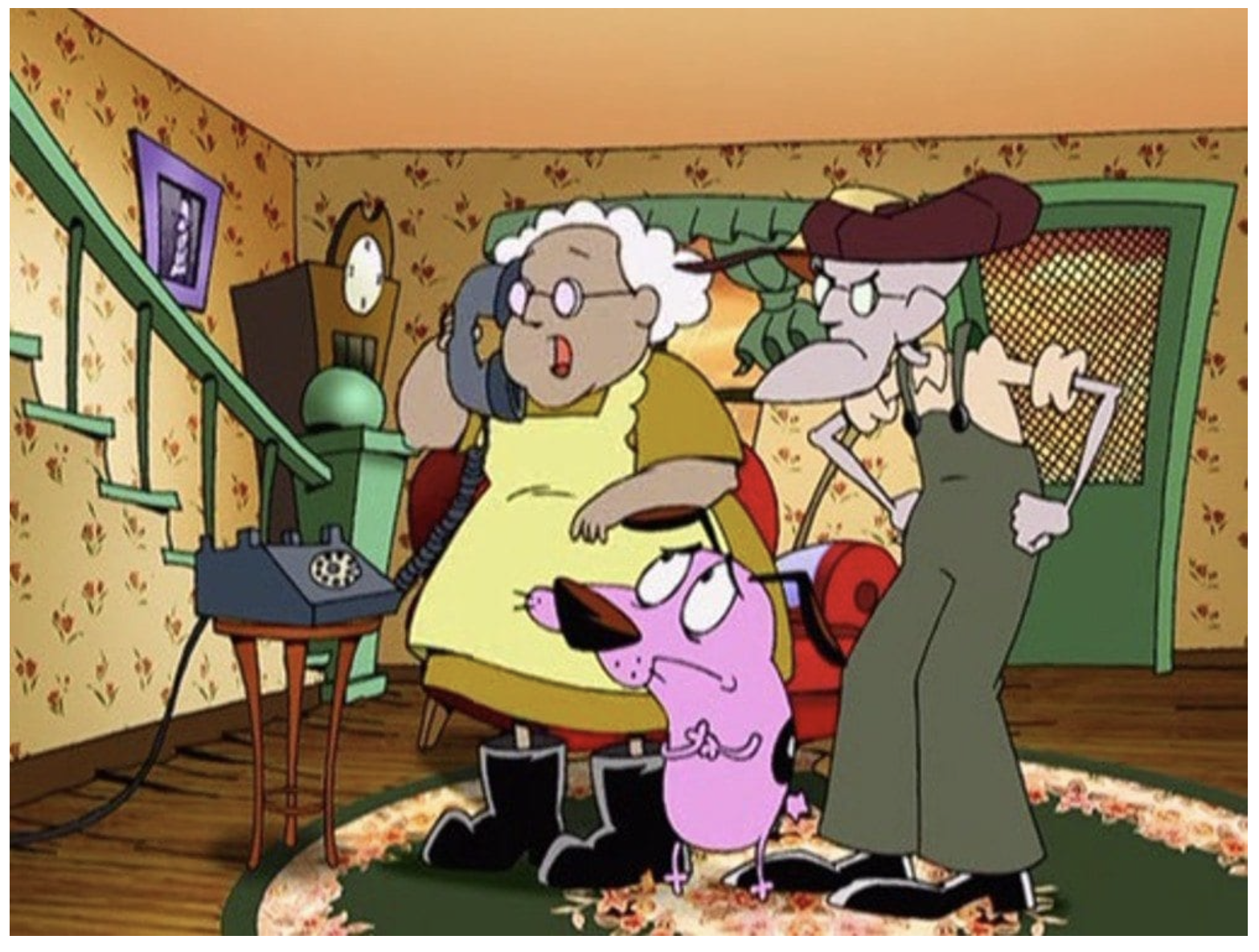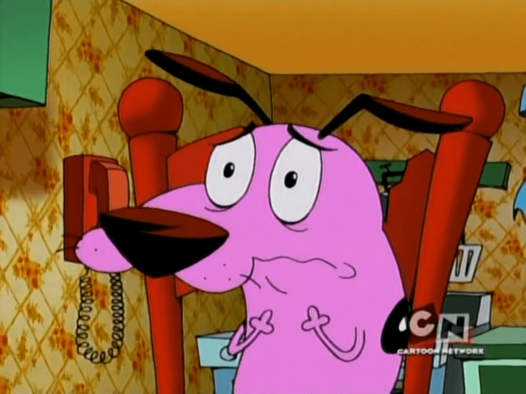 I have been rewatching Courage the Cowardly dog on HBOmax for the past few weeks. And if you are here on this journey with me, you know that rewatching kids shows is hit or miss. There were a lot of shows that didn’t hold up to me… and I chalked it up to nostalgia. THIS IS NOT ONE OF THOSE SHOWS. My sister enjoyed watching the reruns that came on Cartoon Network back in the day. When she commandeered the tv (I am 8 years older than her.) I never felt annoyed about having to watch this particular show. Fast forward 20 years….And now I am able to share old shows with my nieces and nephews. My niece was looking for something a bit scary but not too much… I mean she is 6. (And before I get criticism… I used to Tales from the Crypt… so this is not on that level. Another scared dog that helps his friends/family get to the bottom of things. Sign me up.
