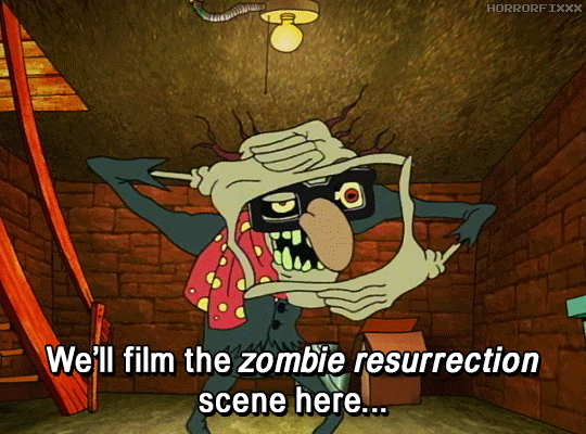 - “Everyone Wants to Direct” – This one was a bit more fun for me now that I am a bit older. The Bagge family is sitting at home one night when they get a knock at the door. Standing at the door is a man who claims he is is Benton Tarantella, the world-famous film director. (For some reason that was too funny to me.) He tells Muriel and Eustace that he has been scouting locations for his next movie “The Return of the Zombies from Beneath the Farm” and he thinks their farmhouse would be the perfect location to film the movie. Benton asks to film on the farm and Muriel is enthused, but Eustace isn’t interested. But when Tarantella offers a large sum of money, Eustace immediately changes his mind and agrees to the deal. (Eustace being useless as usual.) Courage isn’t the least bit excited, and grows increasingly worried that Tarantella might be a zombie, when he witnesses his body parts falling off on several occasions, then Tarantella picks them up and pops them back into place. Courage keeps trying to warn his owners, but Benton thwarts his efforts each time. Tarantella, Eustace and Muriel get ready for the movie in the basement, and Tarantella even asks Muriel to star in the movie as the victim of the zombie sacrifice. Eustace is then asked to dig the hole that the zombies rise from. After Courage tries to stop the making of the movie, he is locked out of the basement by Eustace. Computer to the rescue. Courage goes to the computer and makes a search of Benton Tarantella as a movie director, and nothing comes up. But when he does another search, a newspaper article comes up about a man named Benton Tarantella and his partner, Errol Von Volkheim, who masqueraded as film directors to lure unsuspecting people into their clutches to murder them. After murdering 12 people, they were sent to jail. Volkheim was released for good behavior, and Tarantella was left to die in prison. This confirmed Courage’s suspicions of Tarantella being a zombie. Courage then looks up Volkheim and discovers he is dead and buried in the cemetery…underneath the Bagge farmhouse. Courage discovers Tarantella’s plan and why he wanted to use the basement. He plans to resurrect his dead partner and then go back to their murderous ways, and Muriel and Eustace are his first new victims. Tarantella then asks Eustace to tie Muriel up. Courage finds his way into the basement and takes a look at the script. As Eustace films, the planets align and Volkheim rises from the grave. During the confusion, Courage had gotten his hands on the script again and manages to rewrite and change Tarantella’s plans. Volkheim and Tarantella reunite and then prepare to eat Muriel. Courage finishes changing the script, and as Eustace reads the script to the zombies, the plans are now written for the big zombie to let the dog out of the box and for both zombies to get back in the hole, and then the dog buries them. Tarantella explains that it is not his work, but Volkheim scolds him for being a bad scriptwriter, and amongst the arguing they climb in the hole and Courage buries them. Once again, saves his owners without Muriel or Eustace even knowing the danger they were in. (Courage is one precious pup. They don’t deserve him.) Eustace still looks at the contract wondering when he will get paid.