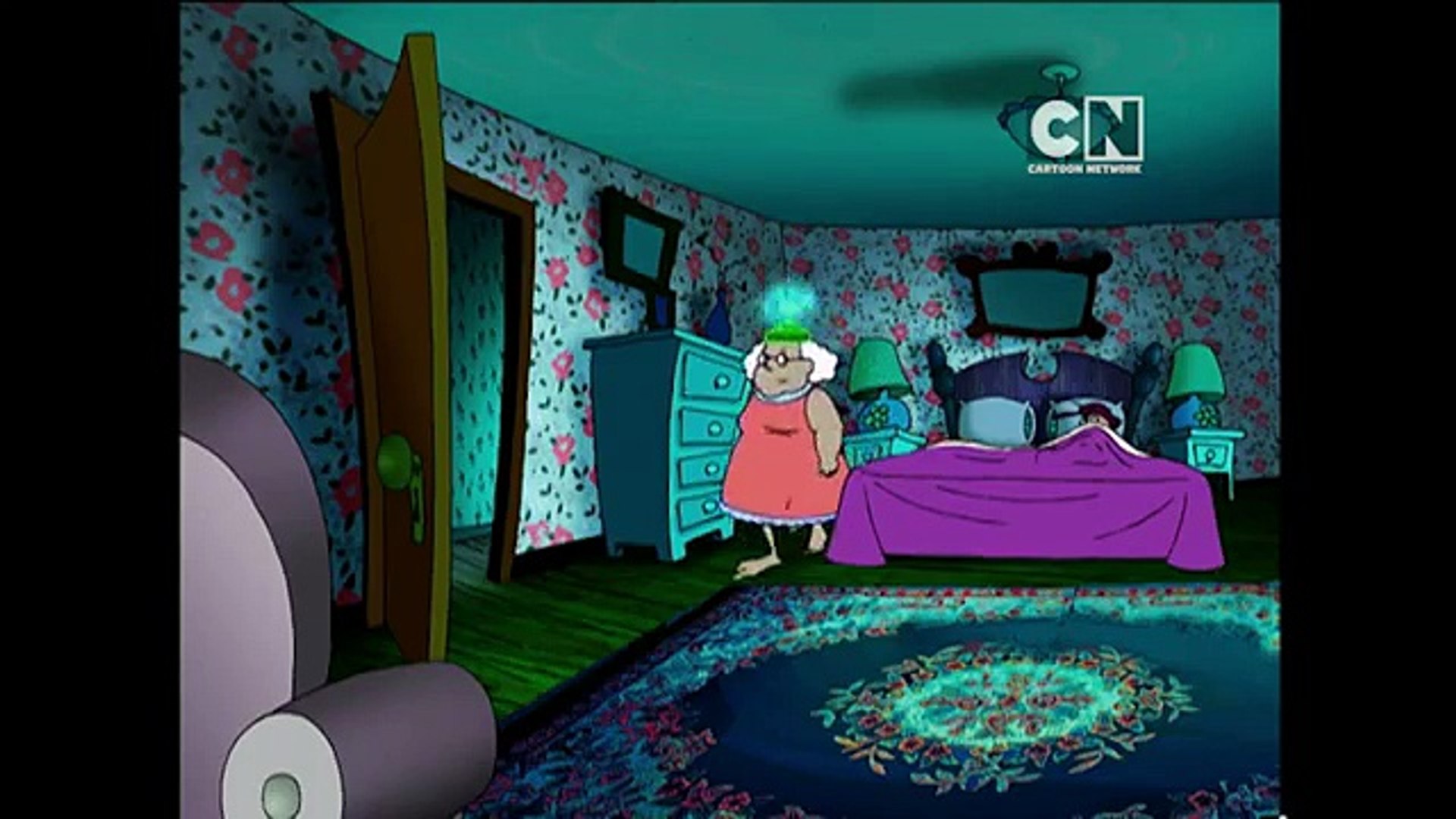 - “The Duck Brothers” – Courage, Muriel and Eustace are asleep in bed when a bright green light shines from the outside. Courage wakes up thinking that it’s already morning, then Muriel starts floating from the bed and into the sky. Courage attempts to wake Eustace and carries him outside to try and show him what happened but he doesn’t see anything. The audience is shown two alien duck brothers arguing about waking up Muriel. They attach a weird green helmet to her head and use a remote control to move her around the space craft. (It seems… you can’t even sleep in the middle of nowhere in peace.) As Courage is inspecting the helmet, the antenna glows and makes Muriel get out of bed, go outside and get into the truck. Courage jumps into the truck bed and Muriel drives to a military compound. The guard lets her in because she is a “sweet old lady” and she drives to the back and walks into the building. Courage is about to follow her when he sees a golden egg roll from under the truck. The alien ducks show up with another controller, but the person they’re controlling is a helmet-clad Eustace instead. Courage makes Muriel break through the wall and Eustace and Muriel begin to fight (similar to bop em sock em robot toys). As they are fighting it’s neck and neck, ending up in a tie. The duck brothers begin arguing and then start crying…. poor duck brothers…. Courage asks what’s wrong, with the duck brothers responding that their brother is inside the building and that he will be cooked if they don’t get him out of there. Courage gives them a plan to get their brother out of the kitchen. The ducks are reunited and thank Courage for helping them. They float back to their spaceship (arguing of course) and everything is back to normal. The next day Eustace still has his helmet on and is serving Muriel and Courage breakfast in bed. Courage finishes the episode revealing the controlling device under the comforter, showing that he’s controlling Eustace. I never feel sorry for Eustace. He is a turd. But this was hella funny.
