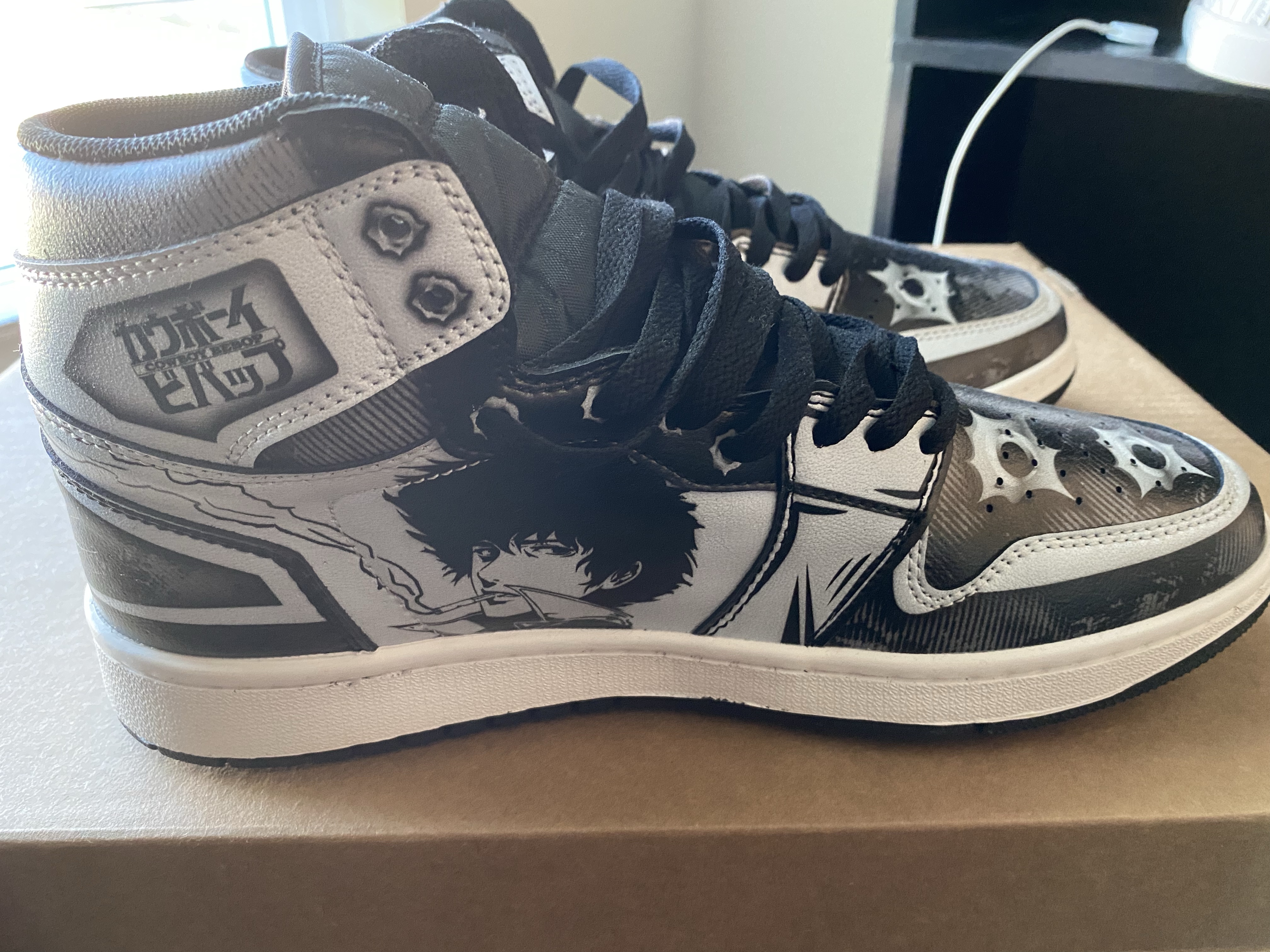 - Cowboy Bebop Sneakers Spike Spiegel Anime Custom Shoes – So this fit perfectly. Just like the last one. And also just like the last shipment… the design was badass and exactly how it is shown on the website. Absolutely no complaints. Again.. Gear Anime comes through again.