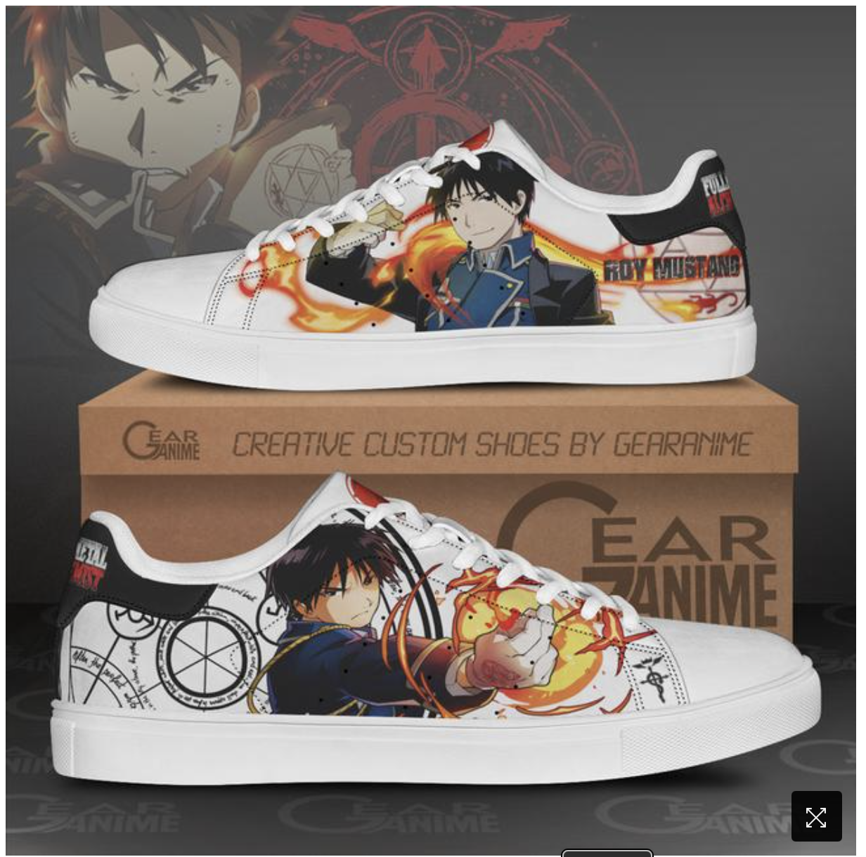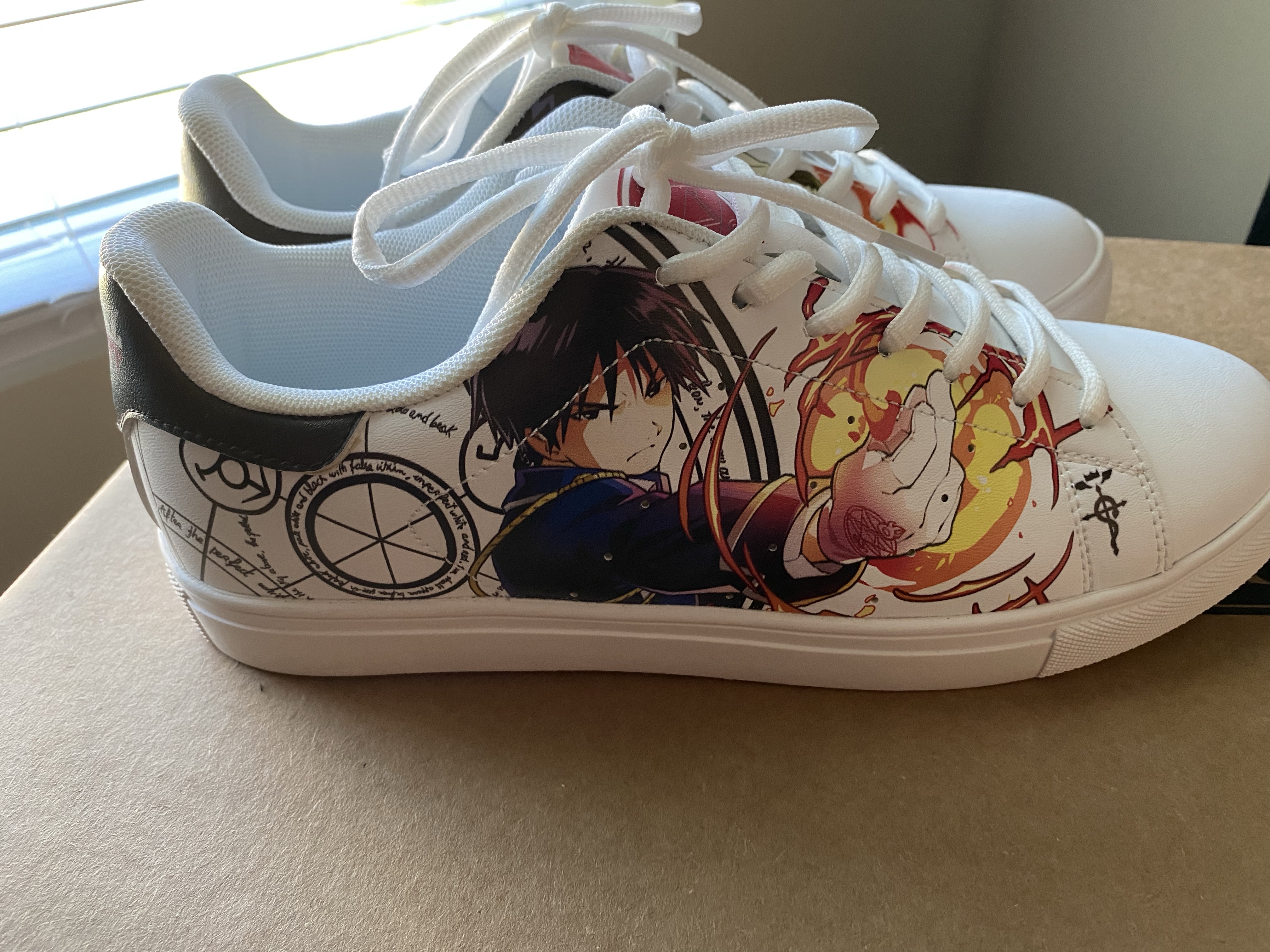 - Roy Mustang Skate Shoes Fullmetal Alchemist Custom Anime Shoes – After I was able to get the right size… And the fit was perfect. I loved it. I don’t normally wear white anything. I couldn’t wait and wear these out.