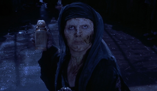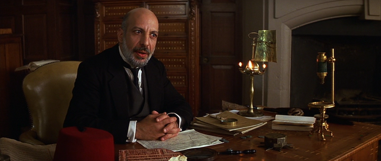 - Evie asks who was present when the chest was opened: Burns, Henderson, Daniels and the Egyptologist, Dr. Chamberlain; Beni ran in fear before they could open the chest. Evie notes that they must rescue the Egyptologist and bring him back to Fort Brydon before the mummy can reach him; O’Connell agrees, ordering Evie to stay. Got to love the way everyone protests O’Connell… (I am torn between loving O’Connell for taking charge and wanting to protect Evie… but also… the way he demands she just do it.) Out of all people, he leaves with Jonathan. I guess that is not so shocking since he has been on the whole expedition with him. The Egyptologist runs through the streets of Cairo with a canopic jar and the Book of the Dead, unnerved at the sudden darkness and unknowing that Imhotep, clad in ragged black robes and a hood, is hunting him. His run doesn’t last long… has he is hunted down and sucked dry. Poor Guy. Taking the jewelled canopic jar from Chamberlain’s withered grip, Imhotep turns around to face the window, revealing a face slightly more regenerated before dislocating his jaw to let loose a massive swarm of locusts, which swarm all around the locals as Imhotep strides through them. Beni, taking advantage of the Egyptologist’s disappearance, proceeds to ransack his office, looking for the Book of the Dead when O’Connell and Jonathan find him. Beni attempts to escape but O’Connell throws a chair at him, impeding him from jumping out the window. O’Connell demands to know what Beni is doing with Imhotep and what he gets out of it, to which Beni responds that as long as he serves Imhotep, he is immune from Imhotep’s powers. (“It is better to be at the right hand of the Devil… than in his path.” Well this can’t be true given what happens to Beni.) Demanding to know what Beni is after, O’Connell lifts the Hungarian up by his shirt towards the ceiling fan, at which point Beni reveals all: the Book of the Dead is what Imhotep wants and he told Beni that it would be worth its weight in gold. Beni goes on to say that Imhotep plans to use it to bring his “dead girlfriend” back to life, but that other than the Book and Evie, he wants nothing. About to say more, Beni is cut off when a loud screaming sounds outside, and Beni takes advantage of the three’s distraction by kneeing O’Connell in the groin and jumping out the window, escaping. I used to wonder why Beni wasn’t done away with earlier in the movie…. He has had to double cross a lot of people in his time…. I have only settled on that it has to be comic relief.