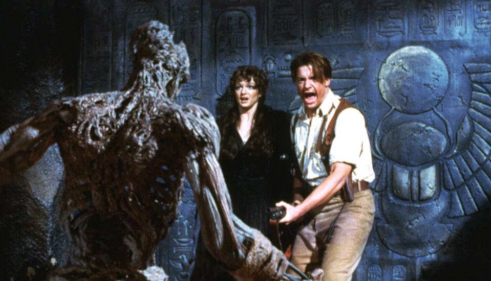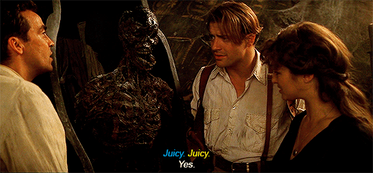 The Mummy is a 1999 American film written and directed by Stephen Sommers. It is a remake of the 1932 film of the same name (Did you know it was a remake? I didn’t. Good times.) with stars Brendan Fraser, Rachel Weisz, John Hannah, and Kevin J. O’Connor, and Arnold Vosloo. The Mummy was theatrically released on May 7, 1999 and grossed over $416.4 million worldwide against a production budget of $80 million. The film’s success spawned the sequels The Mummy Returns (2001) and The Mummy: Tomb of the Dragon Emperor (2008) as well as an animated series and the prequel/spin-off film The Scorpion King (2002), which generated its own sequels.