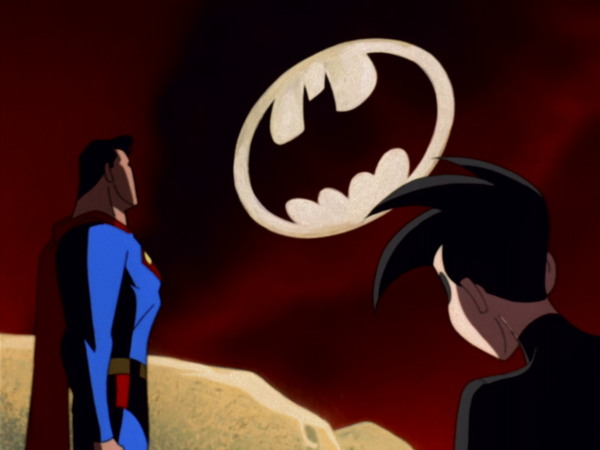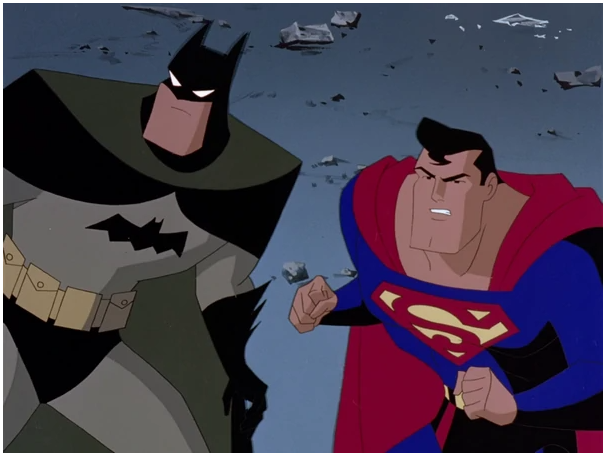 - Knight time (Season 3, Episode 2) – Another Batman/ Superman crossover… Yes, please. thanks. This is the first time Superman visits Gotham. Batman’s poor rivals don’t stand a chance. Roxy Rocket flies through Metropolis on her personal rocket, closely pursued by Superman. She dives under a tunnel, only to find Superman at the other end. She takes the risk of flying right at him, but he manages to snatch her off the rocket, which crashes harmlessly in the bay. Superman is amazed that even Roxy would be daring enough to make trouble in Metropolis, but she shrugs and informs him that Batman has gone missing and Gotham City is now overrun with crooks. (I don’t understand how Batman being missing in Gotham equates to trying your hand at crime in Metropolis.) Out in Gotham, a couple of criminals rob a store of its jewelry on the belief that the police are too busy to come and Batman won’t show. However, they failed to reckon with Robin. He easily foils the robbery, only to find the robbers had reinforcements, but before they can shoot him, Superman shows up and subdues the crooks. Superman then consults Robin about Batman’s whereabouts. Robin explains that Batman claimed he’d be away on business but neither Batgirl nor Nightwing believed it. They traced the call and presumed Bruce has been abducted by “Ghul something” in Romania and followed the lead, leaving Robin to defend the whole city by himself. (Why would you do this? You guys know Gatham is gritty and dirty.) When the Bat-signal goes up, Robin claims that crime gets worse every time Batman doesn’t show. Superman vows that Batman will this time. Batman and Robin appear in front of Commissioner Gordon. Gordon informs Batman that Bane has returned to Gotham and is now twice as strong as he used to be. Unknown to the Gotham Police, “Batman” is actually Superman in Batman’s outfit and imitating his voice. (Creepy… But I still love Kevin Conroy… who doesn’t?) They go to Wayne Enterprises to investigate the messages sent by Bruce Wayne. The call claims that Bruce went on vacation but a previous call to Robin claimed that he would be at work. Robin traces the call to New Zealand, but neither he nor Superman believe the trace to be real. Superman investigates the papers in the room and discovers nanites crawling on their surface. Looking at the phone, he discovers a needle and realizes that Bruce is under some kind of mind control. (I mean that would be the only way to make Bruce Wayne do things against his will.) “Batman” and Robin interrogate the Penguin about the whereabouts of the Mad Hatter. After some convincing, he confides in them that the Mad Hatter is meeting with the Riddler and Bane. The three criminals intend to control Gotham City with Riddler acting as a jailer, the Mad Hatter as a puppeteer and Bane as an enforcer. However, “Batman” and Robin appear to foil their plans. Robin manages to knock down Riddler and cuff him to the cage. Bane engages “Batman” in a fierce battle, but he pummels him into submission with relative ease, stunning Bane greatly. After a short chase, they capture the Mad Hatter who is no match for Superman’s speed. (Poor Bane…. Poor Mad Hatter.) Check out the scene here: (https://www.youtube.com/watch?v=PgW6aMyaXO8) At the Batcave, Superman checks the message sent to Lucius Fox and hears rocket exhaust in the background, whereupon Robin realizes that Bruce must be at Wayne Aerospace, which is supposed to be abandoned. The team heads to Wayne Aerospace and discovers there is in fact a group of technicians working on a new rocket that has Kryptonian features. Bruce comes onto the scene and tells his staff they can go home, and the staff members leave in confusion. After they have gone, Brainiac reveals himself as the mastermind behind Bruce’s disappearance. (Brainiac is the WORST…. he never dies.) He’s about to kill Bruce on the basis that he’s outlived his usefulness, but Superman intervenes and stops him. Brainiac is unconcerned, as he believes he is up against the mortal Batman, but soon finds out who he’s really facing. Superman confronts Brainiac. Superman manages to destroy the rocket and his foe’s new body. Bruce is returned to normal because the nanites in his body have begun to self-destruct harmlessly. Superman cautions him on checking his computer systems anyway, and leaves with a compliment towards Robin. Check it out: (https://www.youtube.com/watch?v=bJNoA2kZIY0)