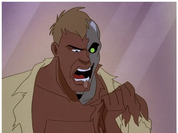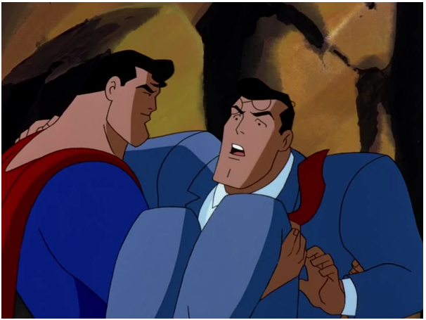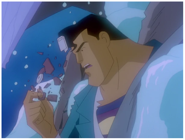 - Identity Crisis (Season 2, Episode 6) – I don’t think I ever knew the story behind Bizarro. This episode sheds some light on the situation. A young boy clings tightly to an electrical tower and is too afraid to climb down. Superman flies down and saves the boy. After a short lecture, Superman flies off and notes a police chase going on through the city. Right after the police is Lois’ car. Superman intercepts the car the police are pursuing but since they are on a winding road, Lois nearly drives off the road and Clark is thrown from the car. Superman catches a confused Clark (the look on Clark’s face) and cautions Lois to be more careful. Lois claims she’s never careful and Superman invites her to dinner to talk about it. Clark decides to leave for the time being. Superman continues his work and saves a helicopter from crashing. After he leaves, he runs into another Superman. The two confront each other and one of them starts to develop white patches on his skin. (“I should warn you. Your makeup is coming off.”) Check it out: (https://www.youtube.com/watch?v=C93xJF8BijI) He insists that his double is doing this and attacks. However, before the other Superman can retaliate, the first falls in pain. The second Superman tells him that he doesn’t look too good and his adversary who now has totally changed in appearance attacks him and leaves. The imposter heads off to a laboratory in the mountains and finds Lex Luthor waiting for him. (I should have known.) Luthor apparently knows this creature and orders him to calm down. However, the order is unheeded. Luthor then asks a nearby scientist, Dr. Teng, what is going on. Dr. Teng explains that the alien DNA was unlike anything they ever cloned before. He expresses a desire to quit the project and get rid of the rest of the clones but Luthor won’t allow it. All the while, the strange Superman confusedly babbles on. He finally gets to see himself and questions what he is. Mercy snidely dubs him “Bizarro” which only upsets him. (Mercy is a jerk.) Bizarro goes out to prove he’s really a hero. Now determined to prove himself the real Superman, Bizarro goes out into Metropolis and starts “preventing” disasters. He hurls a wrecking ball towards a park in order to save a building and nearly causes a boat to crash by holding a drawbridge in place. Fortunately, Superman manages to prevent the disasters from occurring. He insists that the ambitious Superman is not the real Superman. Later, Bizarro meets up with Lois on the roof of the Daily Planet to go on their date. Superman shows up and is attacked. During the fight, the planet is hurled off the top of the building and Lois falls off the roof. Caring about Lois, Bizarro saves her while Superman catches the planet. Since Superman is occupied at the moment, Bizarro manages to leave with Lois. Bizarro takes Lois to a restaurant and explains his confusion. During the talk, Lois takes out a tape recorder and learns of the laboratory where Bizarro was created. Lois asks him to take her there, so he does. In the lab, Lois discovers that there are several attempted clones of Superman and Luthor is behind it all. Luthor explains that he obtained Superman’s blood from his museum during Superman’s fight with the mechanical dinosaur. (He is TRASH. Trash with a lot of money.) Bizarro grows agitated at the sight of the other clones but is stopped by an electrical discharge. Luthor decides to destroy the laboratory, and thereby all the evidence. Dr. Teng initiates the self-destruct sequence. However, Bizarro recovers and goes on a rampage blocking the exit and destroying the main terminal. Now there is no escape and the sequence cannot be canceled. Fortunately, Superman had learned of the laboratory from Lois’ tape and re-opens the exit. However, Bizarro now has a hatred of Superman and attacks him. While Superman and Bizarro fight, Luthor and Dr. Teng manage to escape from the lab but Lois is trapped under a large piece of cement. Superman goes to save her and Bizarro realizes that his true enemy is not the real Superman. The ceiling collapses soon after but Bizarro catches and holds it, telling them to escape. Lois and Superman leave just as the lab is destroyed. They both hope that Bizarro survived the explosion that destroyed the lab. (You end up feeling bad for Bizzaro…)