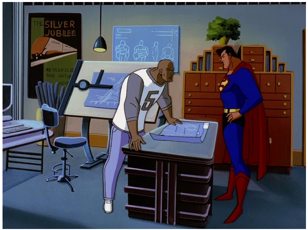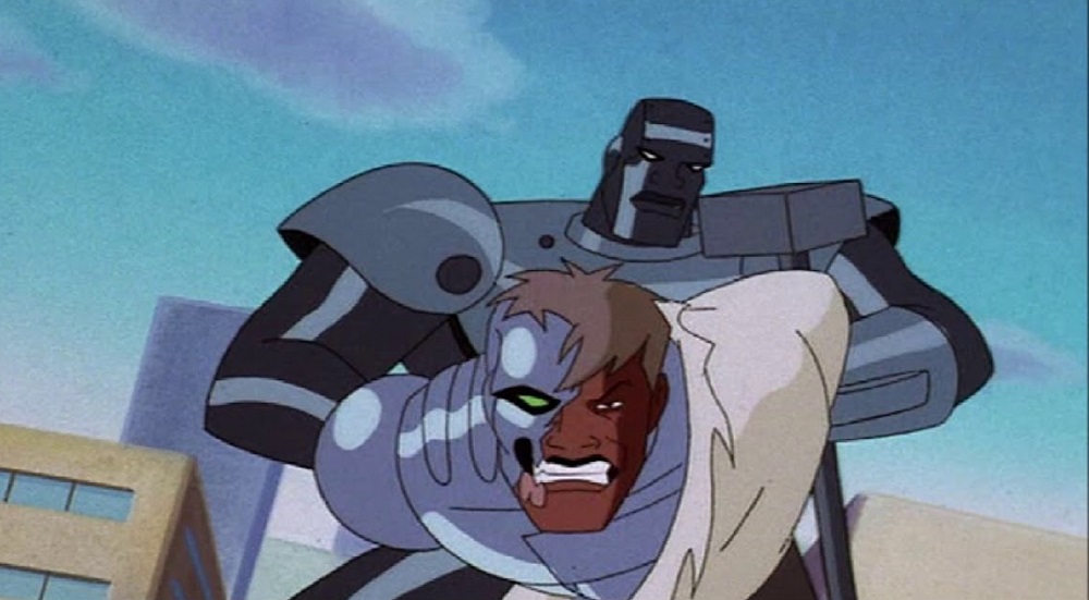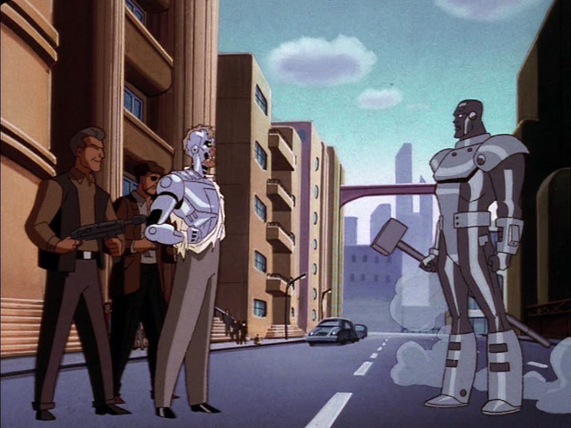 - Heavy Metal (Season 2, Episode 23) – While I did enjoy this episode…. I mean the voice work of Cree Summer has to be applauded… There are a bit of problematic lines from Metallo here… He end ups encountering black people in a neighborhood looking for Superman… at one point he makes a crack about boys in the hood. (Cringey!) After the failure of his previous battle suit, John Henry Irons has decided to work on a new suit, safer than the last one. This suit is soon put to the test when Metallo returns and nearly kills Superman. John Henry Irons carefully removes a steel helmet from a furnace and cools it in a bucket of water. He then adds the helmet to a full suit of powered armor. His niece Natasha inquires if he’s ready to use the suit to be a hero but he claims that he still needs to do more testing. Elsewhere, a bank is being robbed by three masked men. One of them displays incredible strength by tearing the safe open with his bare hands. An alarm is sounded and the police come to foil the robbery. However, the strong member of the gang manages to make short work of the police. (The police in Metropolis are just as useless as the Gotham.) Irons tests an arm-mounted laser and sees that it works. The chase goes past him and he decides to intervene. He blasts out a tire on the thieves’ truck and manages to deflect their bullets with his armored armband. However, a flaw in the armor causes the laser to break. While Irons tries to fix it, the thieves find him and prepare to shoot him. Fortunately, Superman shows up and saves Irons. Another thief shows up and feigns surrender. However, when Superman tries to apprehend him, the thief punches him. The thief then removes his mask revealing that he’s Metallo. Superman starts fighting Metallo using various weapons that allow him to keep his distance. For a time this seems to work, but Metallo shows off a new feature: the ability to fire beams of Kryptonite radiation. Metallo manages to capture Superman and begins to bombard him with radiation. Irons tries to stop him but is unsuccessful. Fortunately, Natasha rams into Metallo with the van hurling him away. Irons grabs Superman and the group drives off. Unfortunately, Metallo manages to capture a police car and gives chase. Irons carries Superman out of the van causing a stir in the neighborhood but they still manage to get into the lab. In the lab, Irons puts Superman under a light generator to feed him yellow sunlight. (Is the sunlight thing common knowledge?) Metallo shows up in the neighborhood and demands that the people tell him where Superman is. When no one speaks up, Metallo and his men start causing random destruction. (This is where thThe people manage to hold out for a time but are eventually forced to talk. Fortunately, before Metallo can get to Superman, Irons comes out in full armor and introduces himself as “Steel”. Metallo’s men attack Steel but he easily manages to defeat them. He then fights Metallo, who is a lot harder than his men and the fight eventually brings him into Irons’ lab. They continue, but Metallo proves to be more than a match for the new super hero. He manages to trap Steel and grab hold of his hammer. He nearly hits Steel with his own hammer but Superman intervenes. The victory is short-lived however, Metallo resumes blasting Superman with his Kryptonite and this times it seems like he’ll finish his enemy off. Before Metallo can finish the job, Steel hurls his hammer directly into his chest, destroying the Kryptonite rock. (I loved it…).