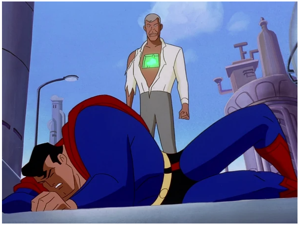 - Prototype (Season 2 Episode 21) – Most episodes start off with a bad idea. This depicts the invention of a suit of powered armor that makes its test pilot, police sergeant Corey Mills, as powerful as Superman. I am 1000% sure that is a terrible idea. Lex Luthor proudly presents his company’s newest invention: The LexCorp Police Battlesuit. This suit of powered armor comes equipped with black light lasers, an impact grenade launcher, jet packs, infrared scopes, and increases one’s strength twenty-fold, abilities nearly identical to Superman’s. The suit’s test pilot, police Sergeant Corey Mills, demonstrates the suit’s capabilities to an awed crowd, even as its inventor, John Henry Irons, warns Luthor that the suit is being offered too soon. (We are being warned… and Luthor, the loser that he is, isn’t listening.) During the demonstration, a major fire is reported. Both Superman and Mills head out to deal with it. They managed to put fire out with Mills landing and revealing that he’s rescued a cat that Superman missed. Superman shakes hands with Mills, who deliberately squeezes too tight. (Ugh….) (https://www.youtube.com/watch?v=cqX7yNJGK4c) Superman leaves, feeling rather worried. Back at LexCorp, Irons insists that it’s too soon to use the suit: because Mills’ entire nervous system is linked to it, they haven’t prepared for the potential psychological effects of using it. Luthor refuses to listen, insisting they’ll deal with problems only as they arise. John won’t accept that, but Lex argues by reminding John that he works for him and do whatever he demands. Realizing his mistake, Irons quits his job, but it’s too late to prevent the suit’s continued use. Later, news reports indicate that Mills is becoming far too violent in fighting crime, brutally beating criminals who have already given up. His wife Trish becomes worried that he’s getting to be obsessed with the suit, treating it like it was a second person. He has shaved his head to improve his interface with it, and shows no interest in the vacation they had been planning for some time. Superman pays a visit to Irons, who told him that Mills is under the influence of the suit’s power and that he will never give it up. Irons also tells Superman about a device that, when plugged into the suit, will shut it down, and also incapacitate Mills in the process. The only problem is that the jamming device is in Luthor’s pocket. Mills heads off to see Luthor, who he believes can help him. Luthor acts like he’s Mills’ friend, but inserts the jamming device. It works at first, but Mills falls on the device, crushing it. Goodness…. Why would you think Luthor is your friend? Also… Luthor… made things worse… surprise, surprise.) He attempts to kill Luthor by releasing Luthor’s pet shark on him. Superman shows up and saves Luthor, but Mills attacks him again. The two of them seem to be evenly matched until Mills shoots Superman point-blank in the eyes with his lasers, temporarily blinding him. Superman refuses to give up. Mills continues his assault, but Superman’s sight returns as Mills is strangling him, and he sees that he’s next to an electric generator. Superman grabs a cable from the generator and jams it into the input plug on Mills’s suit, defeating him. (https://www.youtube.com/watch?v=AwZM7rkLk54)