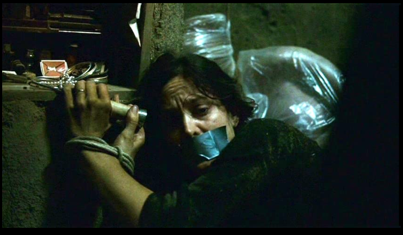 - Kale’s plan is almost foolproof except for the fact that the cops just think he is a troublemaker. So Cousin Gutierrez is not interested in following up on the call. Plus it is the end of his shift. He wants to finish his damn burger. Kale enters Turner’s home to search for his mother. In a hidden room, Kale finds ample evidence of Turner’s previous murders, including a woman’s dress and wig, indicating Turner pretended to be the woman leaving the house the night Kale and Ashley were watching. (My mind is blown. For some reason… I can’t remember how this played out in Rear Window. I have to watch it again.) Also there is a whole maze underneath this man’s house. None of the builders asked questions about this at all? Did he kill them? I have questions. Gutierrez arrives but doesn’t call for back up… and gets his neck twisted… Poor Guy. He was off duty. Damn! Kale stumbles upon the decaying remains of murder victims, as well as their driver’s licenses and belongings, and finds his mother bound and gagged. Turner appears, slashes Kale in the back and pins him to a wall, but before Turner can kill Kale, Julie stabs him in the leg with a dagger, allowing Kale to grab a pair of gardening shears and impale Turner in the chest with them, finally killing him. The boy had to lookout for his mom… she was all he had left. EVEN THOUGH SHE DIDN’T BELIEVE HIM.