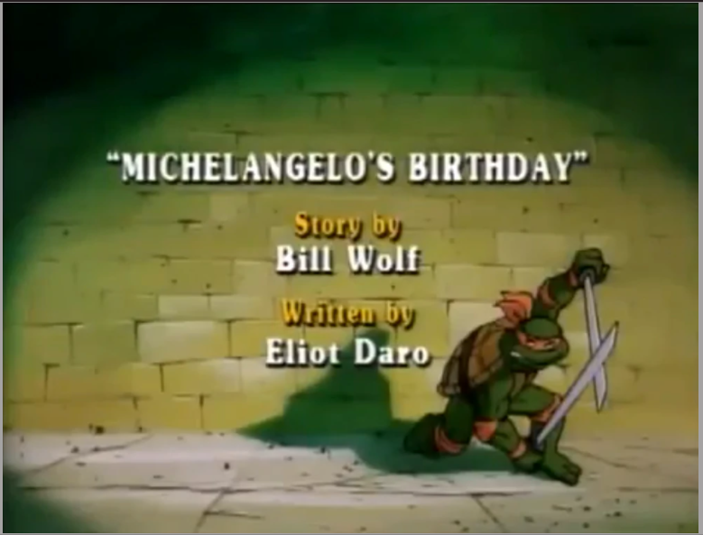 - Michelangelo’s Birthday (Season 3, Episode 31) – The show starts in the Turtles’ Lair, with Michelangelo making a cake out of stacked pizzas and singing a birthday song to himself. But when he walks into the living room, where his brothers are, they eat the pizza-cake, and are acting like the day is any other day. He tries desperately to call attention to his birthday, but is brushed off. When an upset Michelangelo leaves the room, his brothers give each other high-fives about how they fooled Michelangelo, in anticipation of a surprise party they’re planning. (Poor Mikey. Everyone deserves a party.) In the Earth’s core, Krang has forced Shredder out of the Technodrome and Shredder is complaining about it. A Rock Soldier has knocked over some welding flux he was working with, that turns the lava into a puddle of goo. Krang sees it as an opportunity for a horrible plan. Back in the Lair, the turtles and Splinter are training. Michelangelo is kind of dropping a few hints about his birthday, but his family doesn’t seem to be getting any of them. Krang has created an anti-mutagen that he believes will return the turtles back into their previous form, as ordinary turtles. Krang sprays some on one of the Rock Soldiers, but it fails. But when he throws the whole bottle at three soldiers, they become the rocks they once were. Krang believes that the only way for the anti-mutagen is to spray is on at least three of the turtles together. Later, back in the Lair, Michelangelo is giving his family one last chance at guessing what day it is. But since they’re still pretending, they still pretend not to know, and Michelangelo runs out of the room. Raphael and Donatello are amused by Michelangelo’s reaction, but Leonardo begins to feel that they are stretching the joke too far. But Raphael insists that what they’re doing is ‘too much fun.’ In Michelangelo’s room, he writes a note to his family. When he’s done, he runs away. (Teenagers are hella dramatic.) Shredder, Bebop and Rocksteady decide to trash one of the streets, which they believe will attract the authorities, which will attract a friend of the Turtles’. That friend will call the Turtles, and the Turtles will try to stop Shredder. The Shredder then tells Bebop and Rocksteady to starts destroying the area and causing mass panic. April alerts Donatello to the news that Shredder, Bebop and Rocksteady are destroying everything near the Channel 6 building. But as Donatello, Leonardo and Raphael are leaving, they notice that Michelangelo isn’t with them. Splinter answers their queries, reading out loud the note that Michelangelo left behind. Leonardo talks about how he knew they should have ended the joke about them forgetting Michelangelo’s birthday sooner, and Donatello says that it looks like Michelangelo surprised THEM before THEY could surprise HIM. Splinter says that he will look for Michelangelo, while the others go stop Shredder. The Turtles go topside, and fight, but Shredder’s attempts to spray them are less than successful. The three villains eventually escape by scampering over a garbage truck, but stumble across a disconsolate Michelangelo wandering by himself. They strap Michelangelo into the Flushomatic machine that will slowly slowly pours an acidic mutagenic compound onto his body. Shredder orders Rocksteady to contact the turtles via Michelangelo’s Turtle Com, ordering them to meet Shredder within ten minutes, or Michelangelo will be “flushed.” But the plan is squandered when the Mikey gets out of the restraints and reunites with his brothers. Back at the lair, Michelangelo makes one last attempt to tip off his family about his birthday, when Splinter calls him over to where a curtain has been drawn over a room. Behind it is the surprise party they’ve been planning all day.