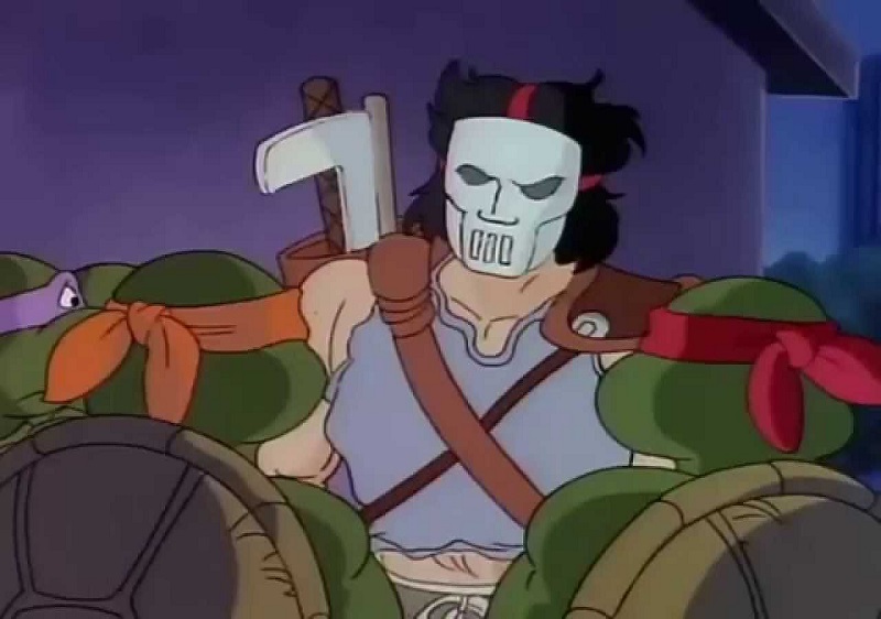 - Casey Jones – Outlaw Hero (Season 3, Episode 23) – Crimes are committed – a mugging, a bakery robbery and a nighttime burglary at a sports store – and all are dealt with by a mysterious man named Casey Jones, who wears a hockey mask and vows that “all lawbreakers” will be punished. The Turtles are heading up to the surface to get pepperoni when Jones spots them and attacks. He eventually concludes that they aren’t criminals, but that they are Martians (which he finds terrifying, apparently). In the Technodrome, Krang is showing off his newest invention: a mechanical bug that can control any machinery. He’s planning to use them to create the Supersize Knucklehead, so Rocksteady and Bebop let the bugs loose in the street. The Turtles find Jones harassing a homeless man and stop him, but he gets away. Raphael doesn’t see why Jones is their business, but Donatello points out that since he knows kung-fu, comes out of the sewers and fights crime, people will blame his activities on them. (Because 3 seasons in, they still have to tell humans that they are heroes. Insert eyeroll.) While April is covering the vigilante, a bug causes her motorcycle to come to life and buzz around her. Fortunately the Turtles arrive to drive it off, only for all the cars on the street to start driving themselves around and appliances to chase people down the street. Unfortunately, this is also happening in high-tech labs, where the equipment starts building the supersize Knucklehead. I believe this is becoming a common thing at this point. We have seen attacking appliances before. But just as a fridge is about to crush Michelangelo and Donatello, Jones rushes in and smashes all the runaway appliances. Donatello spots the mechanical bug clinging to one of the machines, and the Turtles follow it in hopes of locating Shredder. They use the Porta-Tracker to locate the place where Shredder and Krang are, and arrive just in time to see the “giant economy-sized Knucklehead,” driven by Krang. Jones chases the Knucklehead down the street, climbs on board and begins attacking it with a hammer, while the Turtles are left to deal with the wild machines.