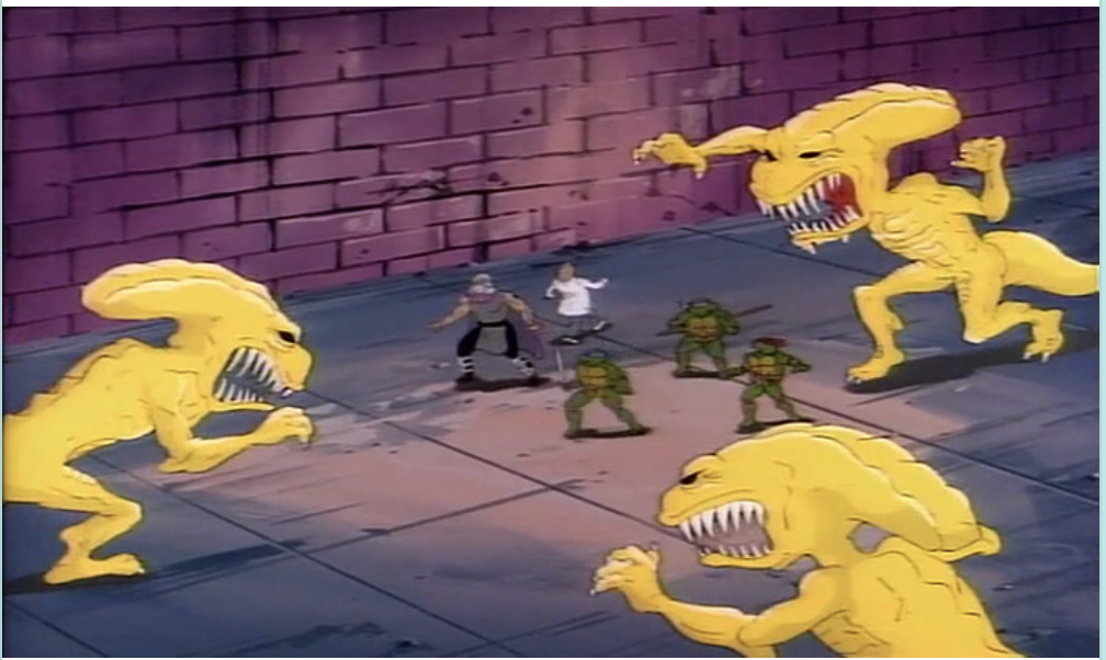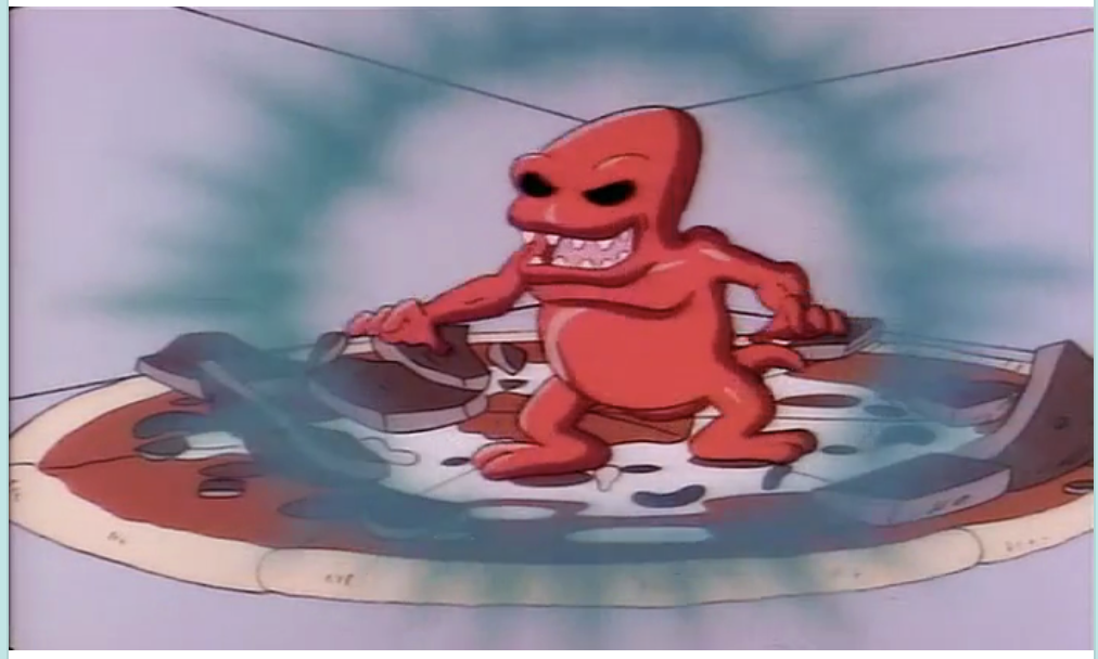 - The Case Of The Killer Pizzas (Season 2, Episode 6) – Nothing like Pizza Monsters to start off the list. Leave to Krang to bring something over from Dimension X. (Let me tell you how funny it is hearing that name again as a 30 plus year old.) A pizza bake off turns nefarious when Krang sends the eggs of Xenomorph-like creatures, which look like meatballs, in order to assassinate the Turtles. Baxter Stockman then rigs the pizza contest so that he and Shredder can deliver the deadly pizzas to the Turtles. However, due to heavy customer demands the Turtles end up getting ordinary pizzas, and the booby-trapped pizzas are out somewhere in New York! (I can feel the kid in me squealing. Like watching tv at my dad’s job back in the day.) This is significant in that it’s one of the few instances where the Turtles actually team up with Shredder, along with Baxter, to take out a common threat since the killer pizza monsters want everyone’s blood. I have difficulty explaining why I love this episode so much. Nostalgia… sure… Because it’s not one of the best, and it’s got a large number of animation/continuity errors that make it unintentionally funny in places. The whole premise of the episode is silly. Hence why my kid self enjoyed it. The whole ridiculous meatball-egg/pizza-monster thing is handled as a genuine peril, (my guess is it had to simple enough for kids to follow athough I doubt that 7 year old me was following the story that deeply.) but I will say Raphael commenting “It’s the creature that came with the pizza!” would make a good horror movie title made me laugh.