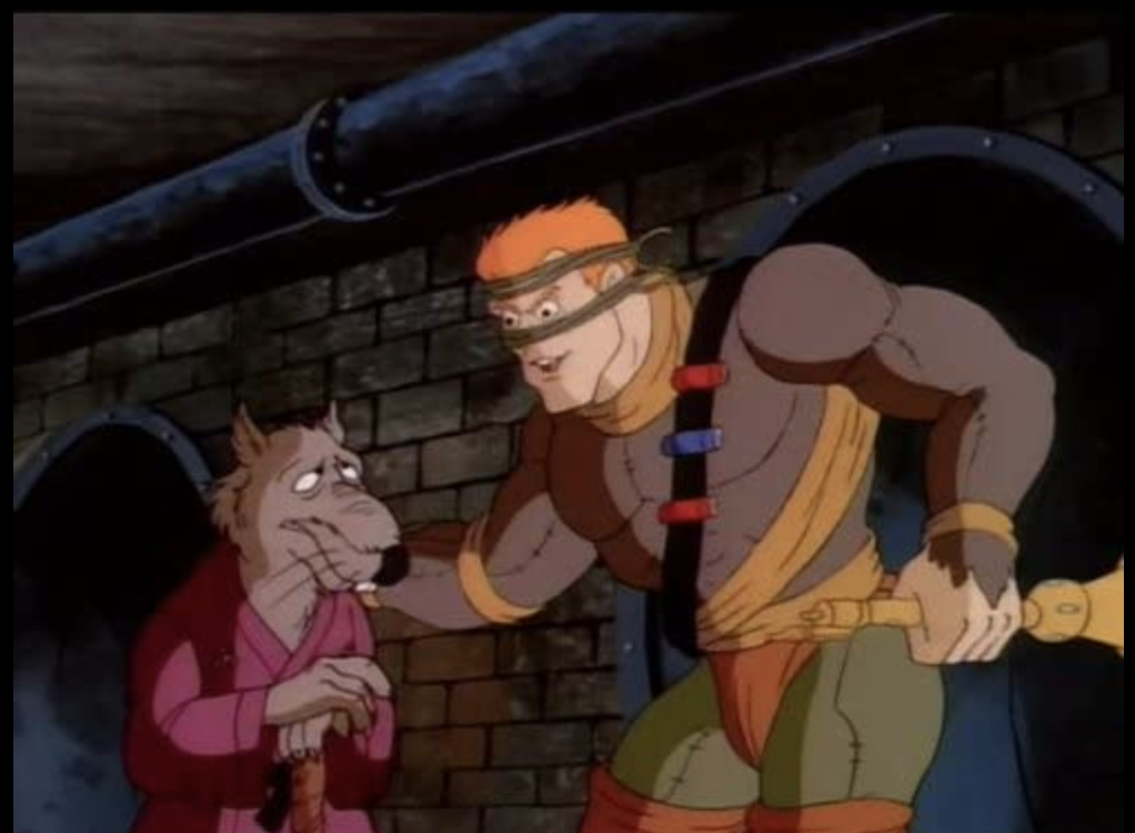 - Enter The Rat King (Season 3, Episode 9) – NYC has a rat problem. Who knew? After Burne Thompson is attacked by rats on his way to work, he demands April do an editorial on the city’s rat problem. The Turtles are also experiencing rat issues, since one of the rats somehow managed to eat an entire pizza mix. And after April visits them, rats chew through her tires and chase her and Irma down the street. It was enough to gross a young me out. Splinter was the only rat that I could dig. But during the broadcast, the lights cut out and April vanishes without a trace. She has been kidnapped by a mysterious sewer-dwelling man known as the Rat King, who has taken exception to her unflattering descriptions of his rodents. He throws her in a cage and demonstrates his ability to control rats with a flute. He lives with rats… EWWWW…. Splinter joins the Turtles in searching for April in the sewers, but he starts hearing a strange melody that causes him to act oddly. The Rat King, upon hearing from April that Splinter is a rat, intercepts him in the sewer and brainwashes him into attacking the Turtles. All four are unable to stop Splinter, partly because they are reluctant to hurt him. It was a shock to my young mind. When Splinter is unable to fight off the Rat King’s influence, Leonardo declares he won’t defend himself against his master… but tricks Splinter into breaking a large water pipe, sweeping away the Rat King and temporarily breaking his hypnotic hold.