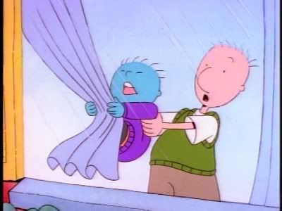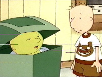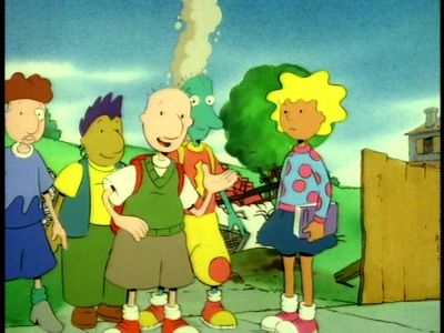- Doug is Slave for a Day/Doug Rocks the House – Judy catches Doug breaking a vase that belonged to their mom. To keep her quiet, Doug must agree to be her slave for a week. Doug is watching a game with Porkchop. Doug and Porkchop play the game in the house. While playing catch, Doug causes the ball to bounce off his fingers and hit his mother’s vase. As the vase falls off the shelf, Doug attempts to catch it, and the vase shatters to pieces as it lands on the floor. Judy catches this and Doug begs her not to tell their mother. Judy has Doug sign a contract to become her slave for a week starting Saturday at four o’clock. He washes the dishes for her, pours her a glass of fruit juice, and cleans her room. By the next day, Doug becomes exhausted and Judy takes advantage of him by having him do the most assiduous and absurd work. When Doug tells Judy that she is going too far, Judy once again attempts to blackmail Doug by telling their mother, only for Doug to finally give in and do her chores out of deference. Skeeter comes to visit and finds Doug in Judy’s room wearing her dress while rolling on the floor, “Bohemianizing” it. Doug tells him about working for Judy and that he is relieved because it’s only for one more day. When Judy comes around, however, she informs him that he can’t whistle while working in proximity to her (which she said he did while re-skinning her bongos, but Doug claims that his nose was actually wheezing), and to make up for the broken rule, he must serve another week of slavery. So Doug, Porkchop, and Skeeter then work together to do Judy’s dirty work. (This is a bit overboard.) The next day, Theda tells Judy that she has to clear her costumes out of the basement before she attends her party, to which Judy responds that it needs a scrub down as well. Doug overhears this and is distraught because he knows that he’ll the one doing it. Angered that the contract may have Doug be Judy’s slave forever, he reads the contract again. As Doug reads the contract, he finally discovers how to free himself from it. When Judy comes inside Doug’s room to order him to clear the costumes in the basement, Doug tells her that he has already told his mother what happened (she didn’t really care about it), which resulted in him getting grounded for a week for not telling her sooner. Because of this, the contract is now void and he is no longer Judy’s slave. Judy begs Doug to clear her costumes out of the basement so she can go to her party, saying that she would do anything. The next day, it is implied that Doug has done Judy’s job yesterday and Judy is now Doug’s slave for the week that he’s grounded. Doug has her turn each page of his comic book he is reading while he is in bed and makes her do a list of his chores as well. (She really took it too far over a vase.) In Doug Rocks the House, hile Doug and Skeeter head to school, they run into Roger and his gang, who are throwing stones at an old, dilapidated house. When Roger throws a stone at it, the house doesn’t not a lot happens. So he offers Doug a stone to throw at the house. Doug hesitates and says that he would do it if he had permission. A construction worker comes around and allows it, saying that the house is history. So Doug tosses a stone at the house and the impact of the stone ricocheting through the walls causes the whole house to tumble down, destroying it completely. The gang congratulates Doug for this, but when Patti comes around and witnesses the damage done, she says that Doug is “terrible.” At school, Doug thinks about why Patti was upset at him. Kids start asking him to sign their rocks… and Doug is no closer to the truth. Doug then discovers Patti talking to Beebe and walks up to her to apologize. Patti cuts him off and apologizes to Doug for getting mad at him. Doug is relieved and says that all he did was knock down “some crudy, old house,” which causes Patti to revert back to her anger and walk away right after yelling at Doug. At lunch, when Patti is paying for her lunch, the lunch lady tells her that Doug has bought her lunch for her. But Patti looks at him with contempt and walks off, confusing Doug. Doug asks Beebe what Patti said, but Beebe refuses, telling him that she can’t tell because she’s not speaking to him. So Doug decides to search for Patti himself. He finds Patti at her locker and tries to ask her what is going on. Patti tells him that there isn’t anything left to discuss. Doug gets exasperated with Patti’s attitude and starts arguing back, agreeing not to talk to her anymore and the two end up getting into a verbal altercation right before Patti finally leaves. When Skeeter comes around, he and Doug find a photo of Patti and her friends hanging out by her old house. Doug notes that the doorway looks familiar, and Skeeter reveals that Patti’s old house is the same house he destroyed. (I get why Patti is upset… But Doug didn’t know anything about it. And it was set to be destroyed.) Skeeter tells Doug that Patti and her father moved out of the house after her mother’s death two years ago. When at home, Doug tries to reason with himself that Patti is still in the wrong to get angry, saying to himself that he could see someone getting mad at another person for destroying their house while they are inside. He then spots the framed height chart from the Funnie’s old house back in Bloatsberg and gets vivid memories of himself in his younger years being measured with the height chart. Doug then knows how Patti feels and decides he needs to apologize. He goes back to the spot where the wrecked house has been and tries to figure out something he can find to remember her old house by. Porkchop is the one to find something for Patti. The two go to Patti’s house. Her father answers the door and is friendly to Doug, but tells him she isn’t feeling well. So Doug leaves, only to get stopped by Patti, who runs after him. Doug apologizes to 