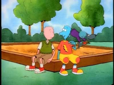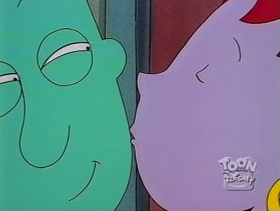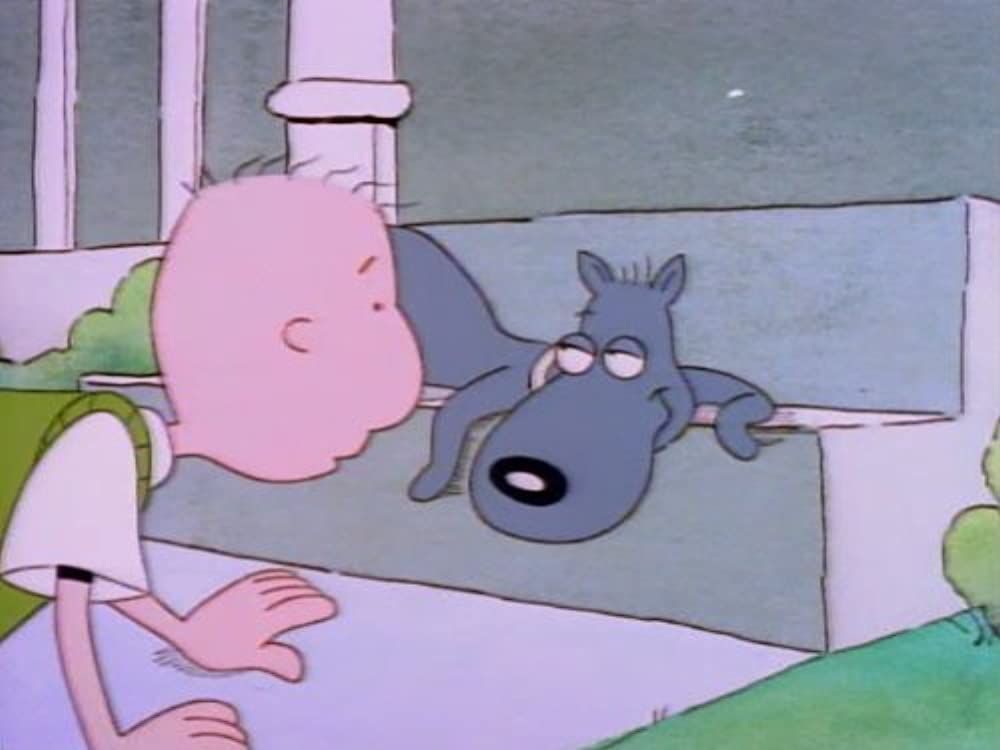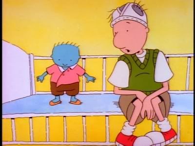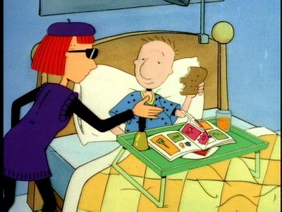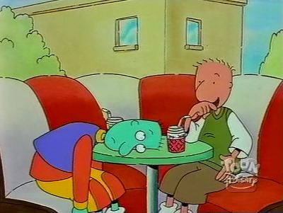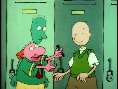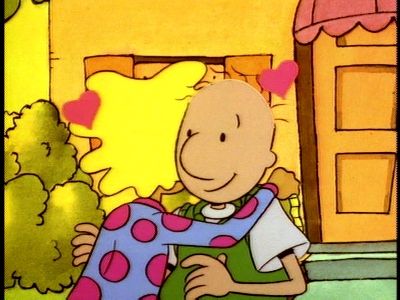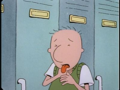 - Doug’s Dog’s Date/Doug’s Big Nose – When Porkchop begins acting very strangely, Doug tries to find out what’s causing his friend’s odd behavior. A boy and his dog. How Cute. The episode begins with a flashback of Doug as an infant riding on Porkchop as a pony. Doug narrates that he and Porkchop were best friends, like two peas in a pod. Later, Doug is shown sitting on his porch playing his banjo and singing about his lost dog. Roger shows up and mocks Doug for getting abandoned by his own dog, to which Doug reluctantly agrees to. Doug narrates the event a couples of days prior when Porkchop starts acting strange. He pays no attention to the paper airplane thrown by Doug that hits him on the head and refuses to eat a Peanutty Buddy chocolate ice cream Doug offers him. Knowing that something is wrong with his dog, Doug takes him to the vet immediately, only to find out that he’s okay, despite the fact that the dog can’t sleep or eat. So the vet convinces Doug to spy on Porkchop to see what his problem is. (The problem is pretty obvious though.) So the next day, 11:45 AM, Doug acts as a detective and notices Porkchop listening to sappy music and moping. Doug’s detective game doesn’t last long, as he becomes distracted by Patti, who invites him to play beet ball with her and the others. When Doug notices Porkchop is leaving, he turns it down and quickly follows him. The dog stops in front of a fancy house, and Mr. Dink shows up and tells Doug that Porkchop has a case of puppy love when he notices a female dog that Porkchop falls in love with. So Doug helps Porkchop get ready for his first date and tells Porkchop to be home by 10 o’clock. At 7 o’clock, Doug plays Barnyard Chess on his own and becomes bored. So he decides to draw instead and ends up drawing a picture of his dog. Doug soon begins to miss his dog. As Porkchop is still on his date, it is almost bedtime, and Doug begins to worry about his dog, not to mention the stormy weather. When Porkchop finally shows up, Doug admonishes the dog for coming home late, but Porkchop is too love struck to heed anything Doug has said, even after the latter asks him if he would pick his lover or his owner, and the dog goes inside his igloo. The next day, Doug goes to Porkchop’s igloo and offers him a Doggy Delight, only to find out that he is missing. Doug is convinced that his best friend is leaving him. During a game of Barnyard Chess with Skeeter, Skeeter convinces Doug to get a new pet. Doug instantly disagrees, and when he hears Patti calling, he goes over to the baseball diamond and learns how to play beet ball. (He tells Skeeter to hold on.) When Patti reminds Doug to bring Skeeter over next time, Doug soon remembers that he had left his friend and apologizes for leaving him, using Patti’s effect on him as the reason. Skeeter forgives him. When Skeeter reminds Doug that the two are still friends, Doug soon realizes that Porkchop might be home too and runs to his house, where he sees the heartbroken dog sitting on the porch. The female dog that Porkchop fell in love with has dumped him for another dog. Doug reminds Porkchop that he still has his owner as a friend, and everything goes back to normal. Skeeter later gets a date of his own, but Doug isn’t worried, because he knew that his friend will be back. In Doug’s Big Nose, Mr. Bone announces through the intercom that everyone will be taken their school picture at photo swap day. (Man… I wish we did this in school seems super creative… but maybe not. I was not as popular as I would like to think.) As the bell ring, the students leave the classroom and Skeeter explains to Doug that everyone gets their photo traded with someone else. As Doug imagines Patti swapping her photos to him, he goes with Skeeter to pick up his 3-year-old brother Dale from Ding Dong Daycare. When Dale comes out, Skeeter introduces him to Doug. Dale greets him when he says “Hiya, big nose,” which cause Doug to lose his self-confidence. (Kids can be so cruel… Poor Doug.) Doug starts becoming insecure of his big nose. When Roger shows up, he mocks him and tells Doug to get two pictures taking: one for him and one for his nose. As if Roger’s nose is smaller. Doug becomes upset because he was the last to know that his nose was big and that he probably had one his whole life. Doug tries to contrive ways to make his nose more inconspicuous and wears a suit, glasses, and plastic ears. He shows up late in Mrs. Wingo’s class as she is teaching. Doug compares the math problems to how big his nose would grow as he ages: thinking if A equals how big his nose is now, and B represents his nose’s annual rate with growth, then it would be his nose that would get a college degree. In his imagination: Doug swaps his photo with Patti and Patti looks at it, only to get poked in the face by the growing nose that emerges from the photo. During photo swap day, Skeeter had just taken his picture and as Patti and Beebe sit with them during lunch, Beebe asks Patti how her picture came out, to which the latter responds “Who knows?” Doug, trying to hide his prominent nose in front of them, becomes convinced that Patti and Bebe are mocking him already, and Bebe also adds that the girl in front of her was “nosey.” Patti also adds that people should “keep their big noses out of others’ business”. Doug leaves the table and refuses to take his picture. Skeeter tells Doug that it’s the rules to get your picture taken, unless you got sick. So Doug goes to the nurse after painting yellow spots on his face and fakes being sick to avoid taking his photo, telling the nurse he has “turkey pox.” But the nurse doesn’t buy this, telling Doug that he is the fourth kid that day to make up that story. So Doug says instead, he has the “kangaroo flu”, which also proves to be futile. When Doug’s story about having an “allergic reaction to beets” is also equally implausible, he gives up in