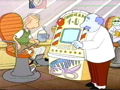 - Doug Gets His Ears Lowered/Doug on the Wild Side – Doug’s hair is getting too long but he hasn’t found a barber yet since moving to Bluffington. (seems like a long time to go without getting a haircut.) Doug wakes up in the morning and decides that it is time for him to get a haircut. He states that no one has ever cut his hair other than his old Barber Big Al Sweeney from Bloatsburg. While searching for a barber, Doug runs into Mr. Dink, who introduces him to the Cutting Edge Hair gadget. As Doug tries to find the barbershop, he later rebuffs the idea, figuring he doesn’t want to look like Mr. Dink. Skeeter comes around and asks if he wants to go to the mall with him to purchase the new video game Canine Space Race. When Doug tells him that he is getting a haircut, Skeeter says that Doug is “getting his ears lowered.” Judy runs into the boys and takes Doug to the barber shop she goes to called Slash, Burn and Curl. Doug looks around the shop to find many customers getting the most absurd hairstyles he has ever seen. (What else did you espect from Judy’s hair salon?) Judy then introduces him to the barber, but Doug later rejects the shop as well, and Skeeter asks Doug if he would like to go to the barbershop at the mall with him, adding that they would make his hair perfect. So he goes to the Four Leaf Clover Mall with Skeeter, where they encounter Roger. Roger decides to join Doug on his hair cutting adventure… but honestly… why? Roger is weird. Skeeter introduces Doug to the hair shop Hair Today, Gone Tomorrow. Before Doug goes in, Skeeter warns Doug to not run into a lady known as “The Fluke”, for she is crazy, and Doug’s friend walks to the video store. As Doug steps into the shop, he takes a seat in the barber chair and find that Patti is there as well. Doug unwillingly gets Cynthia, nicknamed “The Fluke”, who turns out to be a white-haired lady with an Australian accent. When she offers Doug a number of bizarre hairstyles, Doug runs away from the shop and Roger takes his spot to get his haircut. Doug feels defeated because every barbershop he has been to is what he didn’t want and ended up not getting a haircut in the process. He later meets a barber named Joe, who had just moved in Bluffington. The barber gives Doug a perfect trim, and Joe reminds Doug of Al Sweeney back at Bloatsburg. Doug discovers that the barber Joe is Big Al’s cousin and Joe offers Doug and Porkchop lollipops. Back in his room, he gets a knock on his door and Skeeter rushes in and tells Doug to look out his window. The two find Roger with a absurd haircut arguing with a couple of squirrels. Skeeter states that apparently, no one has warned Roger about the Fluke and he and Doug laugh at Roger’s embarrassing haircut. In Doug on the Wild Side, Doug’s risk taking grandmother comes to town and shows him a variety of new things. She is apparently not your typical grandmother… Grandma Opal arrives bearing some eccentric gifts. Judy gets a pair of Indian boots, Phil and Theda get caveman clothing, and Doug receives a white jacket, which he finds interesting. Opal later suggests that Doug would take her to a tour around Bluffington, which Doug quickly agrees to. Theda tells Grandma Opal to be back by 6:00 since she is cooking a special supper. Doug brings Porkchop along to ride with his grandmother on her motorcycle sidecar and they ride through the town. As Grandma Opal continues riding, a bunch of bikers come their way. Grandma Opal pulls over and the biker named Bubba pulls up in front of her. She shows him her grandchildren and Bubba shows her grandchildren of his own as well. (Doug thought that it was going to go a different way.) Doug and his grandmother stop by the Sushi Bar to get some lunch. When Grandma Opal tells Doug that sushi is raw fish, Doug starts to lose his appetite instantly. Doug decides to go on a temporary diet. But Grandma Opal tells Doug to at least try it. So as the sushi is delivered at their table, Grandma Opal tells Doug to pretend like it is ice cream he once tried for the first time. Doug then reminisces on this event and voraciously scarfed the ice cream his grandmother offered him as a child. So Doug gives sushi a taste and likes it. Soon, he takes another taste of another sushi and enjoys it. (I used to think the same thing… but Sushi is really great.) Doug asks his grandmother if they could just go, saying that Patti might not feel like talking. But Grandma Opal encourages him to talk to her. So when Patti spots him, Doug diffidently tells her that she looks nice today. An appreciated Patti thanks him for his compliment. Doug and Grandma Opal continue riding and Doug realizes the time. So Grandma Opal rides to the house. The next day, Grandma Opal says goodbye to the Funnie family and rides off. Doug decides to find an adventure of his own and he and Porkchop ride away on their bikes as Doug once again imagines him and Porkchop riding off on their motorcycles. Check it out: (https://www.youtube.com/watch?v=_4spHDU0VTg)