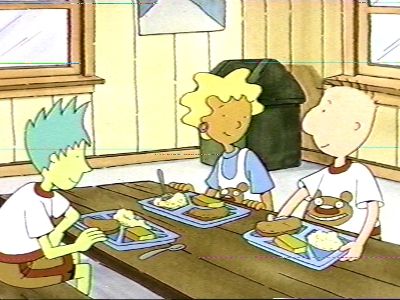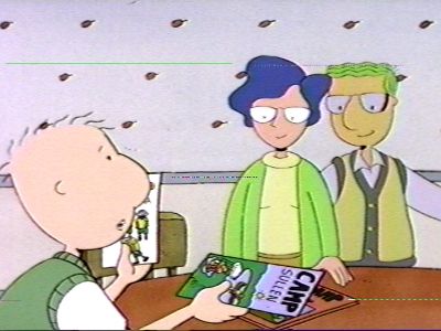 - Doug’s Hoop Nightmare – Doug gets a letter from Bolivia… and the family is curious as to who he knows in Bolivia. Doug’s explanation involves the previous summer, where Doug went to the Grinning Bear Sports Camp with Patti. Doug was really excited about his summer vacation. He wanted to be super organized for summer to get the most out of it. He’s planned out the first half of his day, which is almost over as he’s checking off items on the list. His day, and summer, falls apart completely at noon when he finds out Skeeter was accepted to Camp Einstein last night and had to rush off this morning. At home, Doug’s parents suggest he go to a summer camp because all his friends have gone to camp. He decides to follow Patti to sport’s camp and nothing could have a been a worst idea. Meantime, Doug’s asthmatic cabinmate Leonard, who has made a career of escaping summer camps, plans yet another escape. However, Doug, Chalky, and Patti have to worry about the upcoming basketball game they have to play against a tougher camp. Doug has no skills to speak of. When Patti tries to help him… and shrugs off her help in favor of looking cool and almost tanks the teams chances. They pull out a win in the second half… but who sent Doug the letter? Well it is from Leonard. It may be several months later, and school may have started weeks ago, but Leonard finally escaped that awful two week camp and Coach Spitz will never find him. Well not really. Coach Spitz is sitting behind him.