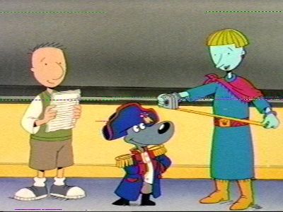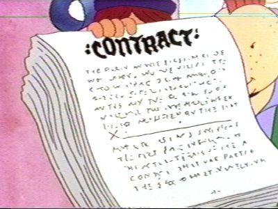 - Doug’s in Debt! – Doug has borrowed a costume from Judy to give his report. Doug has to start working on his history project. He hasn’t decided who the subject will be. Doug says it has to be an important historical figure. It can’t be about his dog. He figures to dig through Judy’s stuff to get an idea. He bases his decision on the costume he finds. Napoleon. Before he can do much of anything, Judy runs into the room, grabs the costume, throws it into the trunk, and slams it shut. She reminds him that he is forbidden to touch her costumes and kicks him out of her room. He starts begging because adding a costume to his project guarantees him an A. She refuses, saying the costume is expensive and irreplaceable. Doug says he’ll guard it with his life. They get into a repetitive argument that brings their mother to tears. Judy allows Doug to borrow the costume, but he has to sign a contract. Doug doesn’t even read the contract before signing it and taking the costume. The contract states if she doesn’t get her Hat back, Doug would do her shows forever. He’s excited about getting an A. But the contract states At school, Doug finishes up his oral report on the Battle of Waterloo before introducing Napoleon Bonapart. After school, Doug is walking home when Skeeter spots him and tells him they need a goalie. Without asking which sport they were playing, Doug says, “cool,” and throws his stuff on the ground before running off to the basketball court. The wind blows the hat away immediately. Later, Skeeter compliments Doug on the game. He says he’s never seen someone stop so many goals with his face. Upon returning to his abandoned stuff, Doug complains that someone has kicked dirt onto the coat, and oh no, the hat is gone! (Why didn’t he take better care of stuff? Judy not wanting him to use her things was warranted.) Roger finds it and won’t give it back to Doug. In order to get the hat back from Roger, he asks Doug to do many favors including stealing a plastic cow. After all the favors are done, Roger still refuses to give the hat back. Since Doug can’t return the hat to Judy, he must suffer the consequences. After Doug tells Judy that Roger won’t give the hat back to her, Judy takes the hat from Roger. With Judy getting her hat back by herself, Doug believed he would do her shows forever, until her friend revealed a loophole in the contract stating that as long as Judy got the hat (With or Without Doug getting it himself) he’s off the hook, legally. While Doug was happy that he didn’t have to do her shows, He notice that with Doug in the play, her show would be ruin and he agreed to be in that one show.