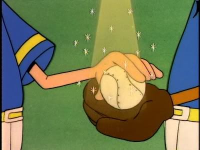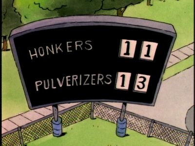 - Doug on First – Patti’s Pulverizers are playing against their opponent in a baseball game. One of the players hit a ball and the Pulverizers get a double out on the other team. Patti, the pitcher of the team, strikes out another player on the opposing team, winning the game for the Pulverizers. Doug talks about his game to his parents, but they and the other parents are having a discussion about replacing Patti for someone else as pitcher. Doug walks away upset. (The kids have a system that works. Leave it to parents to ruin things. Doug states voice-over that the parents decided to manage the team themselves since they believe that the kids do not have any maturity to manage it on their own. In the Funnie house, the parents discuss on how to run the Pulverizers, while Doug and Skeeter eavesdrop. Theda suggests that the team should take turns pitching instead, which Doug and Skeeter believe will do no good since the Pulverizers are playing against the Honkers. The next day, Doug practices pitching with his father, which Phil calls the “Funnie Fireball”, a pitch that has been in his family for generations. When Doug practices his pitch the first time, he throws it too high and ends up accidentally hitting Mr. Dink in the head. Mr. Dink returns the ball to Doug and Phil. Doug tries to convince his father to let him play first baseman instead, but Phil shows him his picture of his team, the Bloatsberg Killer Weevils baseball team, where he was their number-two pitcher. He tells Doug that he was born to pitch and that it’s in the Funnie blood, but Doug is not motivated one bit and wants to stay on first base instead. Doug, Skeeter, and Patti are then seen walking home after practice; Skeeter returns to his house. Doug tells Patti how unfair it was for the adults to interfere with their team’s decision, but Patti suggests that the others should learn how to pitch before their game against the Honkers. Doug fills with determination and feels that he probably can pitch. During the baseball game against the Honkers, Connie is revealed to be the pitcher of the team, and attempts to pitch a number of balls, but fails. So Skeeter takes her place as pitcher instead, but ends up pitching easy home runs. Doug is now on the pitcher mound and Roger mocks his pitching skills as he comes up to bat. Realizing that he is no pitcher and is instead a first baseman, Doug finally calls timeout and has Patti take his place as pitcher. She ends up striking Roger all out all three strikes, as well as the rest of the Honkers, and her team comes back to take the lead. In the final inning, one of the Honkers’ players hits the ball and the shortstop catches the fly ball, giving the Pulverizers the victory over the Honkers, their first over them!