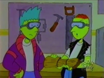 - Doug’s Hot Ticket/Doug’s Dental Disaster – The Beets concert in Bloatsburg is sold out, and luckily Judy has two tickets which she doesn’t want. Judy gives Doug her tickets and he and Skeeter set out on an incredible adventure on the road and end up as Beets roadies when they meet other fans. in the beginning, Doug, Porkchop, and Skeeter are walking down the street singing the Beets. They approach a ticket booth to get tickets to a Beets concert at Bloatsberg, only to discover that the line is very long. Skeeter fears that the long line will squelch the friends’ attempt to make the best Beets concert in the world. Later, Doug is in his room in disappointment, upset that the concert is now sold out. But he is saved when Judy comes into his room and offers him two tickets to the concert, which her date offered her, telling Doug to paint her entire room black in return. Doug calls Skeeter and tells him about the two tickets Judy has offered him. Doug then asks Skeeter how the two would get all the way to Bloatsberg, and Judy reminds him that his parents wouldn’t allow him to take such a trip so far away. (So she gave him tickets to a show she knew he couldn’t go to.) Skeeter suggests that they should take the K-Bluff Beets Bus there. (Does this happen? Seems like a great idea to me.) When the bus arrives, Doug and Skeeter turn over their parents permission slips and where they encounter a number of Beets fans inside. While Charlene tells Doug and Skeeter her stories of truck driving, Frizzy goes to the bus to check on the other Beets fans, reminding the two friends not to be late. Doug and Skeeter become impressed when Charlene has told her story of how she actually wrestled an alligator out of the front seat of her vehicle and got the blood supply to the hospital on time. Charlene later leaves the diner to get in her truck to ride the open road. He and Skeeter then discover that they had let more than ten minutes elapse and find that they had missed the bus. (Now… I have been on several trips… We have never left someone behind… and they are kids too.) Doug and Skeeter are now stuck in the middle of nowhere, and Skeeter suggests that the two should call their parents. But Doug, knowing what Judy told him during his phone call with Skeeter earlier, refuses, for his parents might never trust him to go on his own again. Doug then suggests that the two could try walking to Bloatsberg. A sheriff named Melvin Hayes overhears this and wonders what Doug and Skeeter are doing inside the diner at 7:40 PM, meaning that the Beets concert starts in twenty minutes. When the sheriff realizes that the two are on their way to the Beets concert, he decides to give them a ride to the concert. While driving, Sheriff Hayes tells Doug and Skeeter that he was a Beets fan himself when the band was making basement tapes in his basement. He also adds that they were singing about his sock with the single “Where’s My Sock?” Doug and Skeeter finally make it to the concert. Unfortunately, they discover that they had left their tickets at the diner, and they get the premonition that they will miss the concert for sure. But to their relief, they find out that the Beets are just picking up their equipment and that they didn’t miss the concert yet. The Beets offer Doug and Skeeter two backstage passes and have them help them carry their equipment out of the truck and to the stage. Doug and Skeeter are amazed of carrying the band’s instruments. It is revealed that the Beets were on delay for a while, and the band performs their latest single “Shout Your Lungs Out.” Doug and Skeeter watch in delight and say that it is the best concert they have ever been to. In Doug’s Dental Disaster, Doug’s tooth hurts when he gets a cavity after biting into a candy bar at the movies, and afterwards has to go to his dentist. Although he doesn’t want to go to the appointment, he daydreams how Secret Agent Smash Adams would handle a dental situation. The episode starts off with Smash Adams tiptoeing through the house and encountering a fireplace. He uses a secret switch, which activates the wall, causing it to rotate by virtue of a secret switch. Smash enters a mysterious cave and presses a green button under a television screen, revealing villain Dr. Decay. The villain activates a trap door, which Smash Adams is standing under. The secret agent falls through the trap door and lands on the dental chair, which he is strapped in. It is revealed that it is a movie Doug and Skeeter are watching at the movie theater. Doug bites into his chocolate bar and painfully gets a toothache. When he runs into the bathroom to take a look at it through the mirror, he discovers that he has a sore tooth. (Now people would think that kids would reveal to the adult in their lives they are in pain. But no.) At the Honker Burger, Skeeter takes a look of Doug’s teeth and tells Doug that he has a cavity. When his friends tell him that he would have to go to a dentist to get it filled, Doug explains that the dentist “give him the willies.” Patti tries to convince him that it won’t be bad. But when Doug asks her how many cavities she had, she says that she hasn’t had one yet and would be scared of the drilling and the needles, demoralizing Doug. (Patti is usually better than this… but *Shrug*) Roger enters and makes things worse… While Doug sits on his front porch, he decides to make the pain dissipate on its own. But when he asks Mr. Dink if he had a cavity before, Mr. Dink informs him that he had so many cavities that he lost all of his teeth and had them replaced with titanium steel dentures. Cognizant of how ignoring his cavity would cause impending risks, Doug becomes encouraged to circumvent the same fate by going to the dentist to fill up his sore tooth. At the dentist, Doug waits in the waiting room and notices Dr. Kay’s framed diploma from dental school on the wall and realizes that maybe the dentist won
