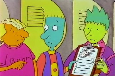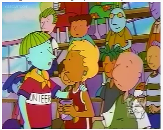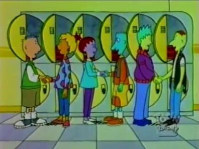 - Doug’s New School – It’s the first day of seventh grade at the new middle school which still does not have a name, so a “Name Your School” student contest is created by the former Mayor White who is now the school’s principal. The contest causes fierce competition between Patti and Doug when they don’t like each other’s school name suggestions. (They are both equally bad.) Doug meets all his teachers including his homeroom and English teacher Ms. Krystal, and during breaks, the students realize the school isn’t quite finished yet. This becomes a running gag… I am not sure about these parents… because I would want to understand why I am being told my child is going to a school that is not done. Also, the gang is on the search for the perfect new hangout since the Honker Burger is now Chez Honque. They end up choosing Mr. Swirly’s. The school ends up being named after Beebe Bluff… and really they should have seen that coming. My favorite part of the episode is where Skunky Beaumont makes an appearance. All of the kids are racing to windows to get a glimpse of the kid.