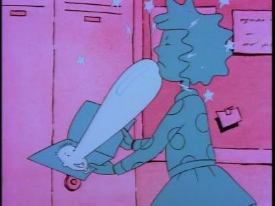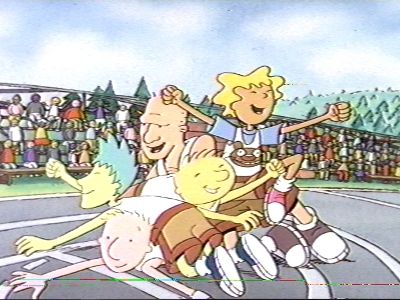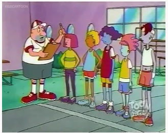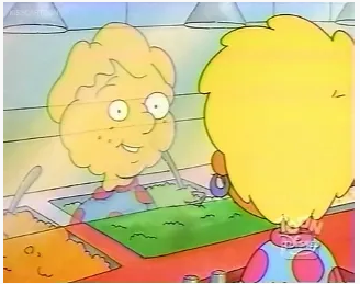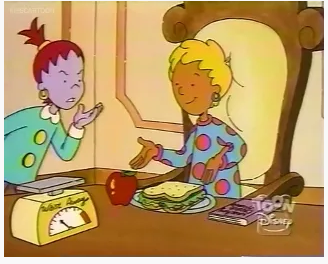 - Doug’s Chubby Buddy – This episode was more of a cautionary tale. It was probably the first time that I saw an animated show take on this topic… (I remember seeing something on Full House about it.) Doug and Porkchop are just playing cards while Skeeter laments the lack of monster news in the latest Weekly Weird World. Patti catches up with them and asks if she can hang out with them. She says Beebe won’t do anything while Teen Heart Street is on. “It’s like she thinks everything stops at four o’clock!” Once they hear that it is 4 pm, they all abandon Patti to also go watch the show. Patti returns to Connie and Beebe. Patti, Connie, and Beebe also watch the awful show. Beebe declares it to be the best episode yet. (There was so much crazy nonsense in the show… ) A voice on the tv says, “stay tuned for a commercial that looks like a documentary.” The commercial defines fat as cushion from injury, or insulation to keep you warm, but then says, “for most of us, it’s just ugly, old fat.” Fat blobs glide on screen. Patti, Connie and Beebe all gasp. Another blob of fat drops down and stands up to introduce himself as Lardy. He’s a fat cell that’s been inside you for years. Lardy says there are two periods of your life where you grow a lot of fat cells. The first is in infancy, and the second is at puberty. This freaks the girls out. The model actor from the show is in this commercial and says, “it’s a sad fact of life that none of you will ever have a 9 inch waist, but now you can try, using my waist away diet kit!” The voice-over man says, “remember: your friends will never tell you when you’re fat.” (Nothing like seeing a satire of commercials that have been targeting women for years.) Patti says they’re just trying to make you think you’re fat because they’re selling that dumb product. Beebe disagrees. She warns Patti that if she’s not careful, she’ll look in the mirror and see Fatty instead of Patti. At lunch the next day, Patti is picking out her lunch when Guy makes her feel bad about her choice. She grabs a salad and he calls it rabbit food. “Puttin’ on a few LBs, huh?” He immediately assumes she’s on a diet. Patti walks by and Doug says hello. She asks him if he thinks she needs to lose some weight. Sarcastically, he says, “oh yeah. You’re huge.” He chuckles and Skeeter chuckles and Patti misses the sarcasm entirely. Patti then tries out for the school’s track team. Coach Spitz says he wants a team that is lean and mean. She approaches Connie and Beebe and says she’s going on a diet. Connie wants to lose weight too, so she’s also going on a diet. Beebe too. Apparently, they’re getting together for lunch now to show off their fat free lunches. Patti bought the Waist Away diet kit. Beebe is surprised she bought the kit. Patti says the actor is lame, but she is in good shape. Using the scale, she says, “this sandwich is a tad weighty, and she tosses half of the ingredients. Patti is tracking her running with her watch. She’s happy to have run for 30 minutes because it means she burned 250 calories. Patti continues exercising more and eating less. At lunch, she’s carrying a tray with an egg and a carrot right past Guy. At the weigh-in, Connie goes first. According to the scale, she lost one pound. Beebe steps onto the scale and is shocked by her seven pound difference. Connie and Patti are impressed until Beebe says she didn’t lose seven pounds; she gained seven pounds. Patti finally steps on the scales and finds that she met her goal to lose three pounds. Satisfied she’s meeting her goal, she gets back to running. (Sometimes, I ask… where are these kids parents. It is ridiculous.) At lunch the next day, Doug asks to sit with Patti. She’s making notes about her exercise and takes a short spray from a can labeled “Spraywich.”It is apparently her whole lunch. At the track, Doug tries to relay his concerns for Patti’s diet to the coach. The lazy, overweight man cuts him off, saying all athletes diet. Doug just doesn’t understand because he’s not an athlete. Doug suggests that she is getting carried away. Coach says they’d win more trophies if more athletes got carried away. Back at the track, Coach Spitz says the team will be the top five students from each grade. Patti eventually collapses… She says she doesn’t feel so good. He tells her to get carried away. Coach Spitz should be fucking fired. Ms. Kristal puts an end to Patti running… Ms. Kristal asks Patti if she’s eaten anything at all today. Patti says she hasn’t because she thought she’d be able to run faster that way. Ms. Kristal explains that your body needs protein, so when you don’t eat, your body starts eating itself and you lose strength rather than gaining it. Doug says that’s scary.