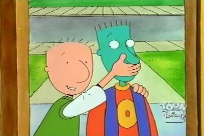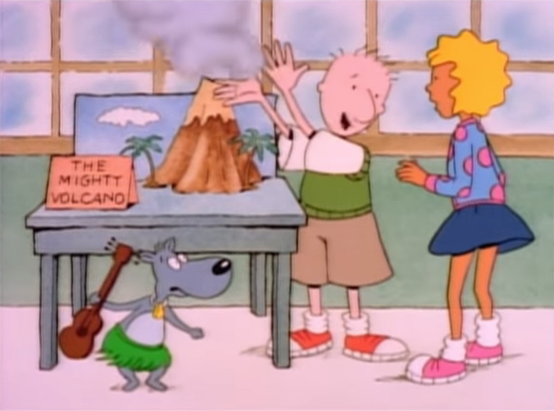 - Doug Can’t Dance/Doug Gets Busted – Poor Doug has moved to Bluffington… and is trying to fit in. And I hated going to dance’s as a kid and this episode highlights why. After Doug checks himself out in his slug costume in the mirror, he heads out to the dance. He already seems like an anxious 11 year old but Roger doesn’t help. Roger asks if the costume is a pile of manure, and if he’s paired up to dance with Patti. After questioning Doug about how he’s never danced before and stating that Patti is the best dancer at the school, Doug imagines everyone laughing at him. After a walk, Doug meets up with Mr. & Mrs. Dink, who are going as a “grade A thorough-bred chicken” and “the wife of a giant chicken.” The trend is to go to ask Mr. Dink for advice but I don’t see where he has ever provided Doug with good advice. After mistaking Doug’s costume for dirty socks, the couple drives off. Doug hangs on a tire swing at the park and plans on not going to the dance, then Skeeter (after mistaking Doug’s costume for Godzilla) comes around, he gives him some dancing tips while beat-boxing. Poor Skeeter tries to help but ends up all tangled up. Check it out: (https://www.youtube.com/watch?v=FGIpaV8gWnE) Doug finally shows up to the dance reassuring himself and fantasizing being a great dancer. Patti then shows up as a sunflower, complimenting Doug on his slug costume (and being the first person to recognize it as a slug). Before the two enter the building, Roger (as a hammer) tells Doug he wants to dance with Patti instead, but Doug refuses. Roger decides to get back at Doug. After Doug gets the hang of dancing (with the help of Patti.) Gotta love Patti. She is super sweet. Roger plans to put ice down Doug’s back, but drops some and slips. As the end of Roger’s hammer costume lands on Doug’s foot, Doug screams. After people start to laugh at Doug, Patti pretends it’s a new dance and everyone joins in (score another one for Patti), except Roger who has fallen on his back and can’t get up. For Doug Gets Busted, Doug makes a model of a volcano for a science project. Chalky teaches his Venus flytrap how to sing the opera, Beebe has a project that shows trees cause more pollution than her father’s factory, Skeeter dresses as the solar system, Roger has a firecracker disguised as a Super Nova, and Doug has a volcano, which he shows Patti, with Porkchop doing the hula dance. Suddenly, assistant principal Mr. Bone comes in and informs Doug that volcanoes are forbidden on school property. Roger tries to blow out the fire from his firecracker, but to no avail. He tries to let Skeeter take the blame, but Mr. Bone catches him in the act and puts out the fire from the Super Nova as well. As the other students witness this, the rumors about the science lab being burnt down precipitates. When Roger takes the blame from his gang, Doug comes around and Roger gets Doug to believe that his volcano burnt down the science lab, and that Doug will get arrested by the cops for the act. In his imagination, he is wearing jailhouse stripes on the run from the cops. Doug runs away, only to get surprised by Mr. Dink’s newly installed car alarm. Back home, Doug sneaks in Judy’s room to find a disguise. Judy comes in and gives Doug a cape, hat, and a fake mustache, and Doug adopts the persona “Jack Bandit.” Doug later has a dream of escaping from Mrs. Wingo’s class as Jack Bandit, only to get caught by a police officer. Doug has no choice but to go on the lam. But first, he walks into his parents room to say goodbye. He and Porkchop set up a tent and a campfire outside as outlaws. Doug succmbs to hunger… Mr. Bone appears and tells Doug that the principal would like to have a word with him. Doug walks into the principal’s office (with Porkchop being kicked out in the process) and as he comes out, he explains that he won second place in the science fair. Mrs. Wingo liked his volcano, as well as Porkchop’s hula dance. So Doug reverts back to his normal life and is seen inside his room, saying that there might be another time where another evil science project might strike. (https://www.youtube.com/watch?v=Pmt_fnnn6UM)