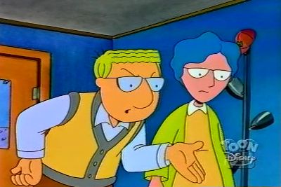 - Doug: The Big Switch – Doug is watching Dr. Cop, but is called by mom Theda and runs into dad Phil. By the time Doug returns, his sister Judy munches on popcorn and watches the Shakespeare on Ice show. Doug and Judy wrestle for the remote on the floor, but Phil wins. Doug spends the next day complaining that his life is hard. He tells Patti that she must have it easy since she gets homeschooled. Annoyed… Patti points out that her life is pretty difficult. This sparks several other comparisons… Like Roger and Chalky as well as Skeeter and Beebe. In the switch for a day, Doug switches places with Patti, Skeeter switches places with Beebe, and Chalky switches places with Roger. At Skeeter’s house, Beebe tries to babysit Dale, and Skeeter orders a banana sandwich at Beebe’s house, but picks up two forks. At Doug’s house, Patti watches Theda clean the house, and at Patti’s house, Doug is homeschooled by Patti’s dad. Finally, Doug sneaks past Mr. Mayonnaise and bolts for home, but runs into Patti. Chalky gets lost in Roger’s house while Roger is overworked by Chalky’s dad. They all go running for the hills. They all come running back to their houses with a new appreciation of others.