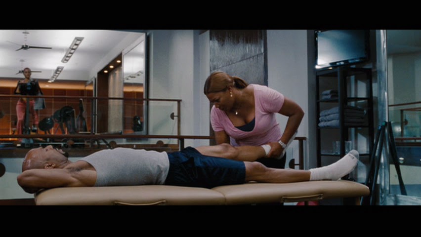 - Here is a scene that annoyed the heck out of me. Morgan and Leslie are getting ready for the birthday party. I reiterate… Leslie was the one that was invited… in her NETS jersey… Morgan is doing the makeup and her mother comes in immediately spouting off about how they were both going to catch men at the party. You can see it more than anywhere else why she and her mother are not close at all. Is there something with older people where they start talking to you about marriage as if you are broken otherwise? Especially when you get over 30… It seems that all her mother talks about is bagging/catching a man. Leslie is a person that can support herself… for some reason that is lost on her mother in favor of Morgan… whose BMW was repossessed. I am eye rolling again BTW. She has some family earrings that instead of giving to Leslie she gives to Morgan. I am just blown away. Leslie excuses herself to get dressed to which Morgan tells her she needs to get dressed up. (When has she not known how to dress for the occasion…?) I digress. Mom was not in the right corner. I didn’t like her for the rest of the movie. And I can see why Leslie spends more time with her father. Her father spends time prepping the ride for her. Now that is a helpful parent. Morgan complaining in the background got me too… “I was not about to go in that Mustang…” Ma’am where is your car?