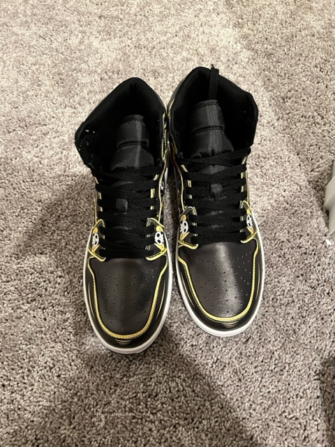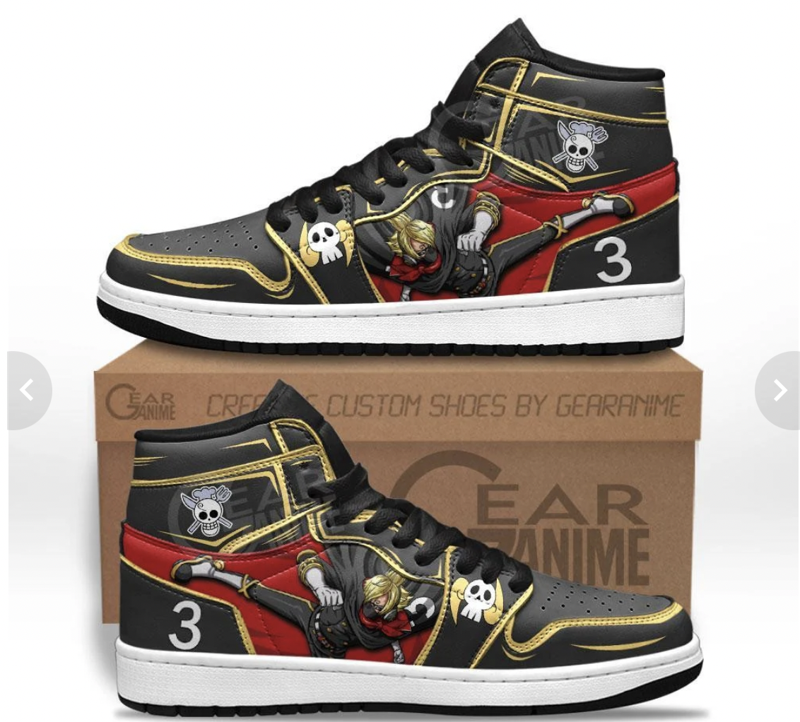 - Vinsmoke Sanji Raid Suit Sneakers – I have a love for Sanji and his raid suit and here is where I get to show it off. It looks just like the picture. I will say… they should invest in sending shoes in more than one box and cramming all of the shoes that I ordered in the same box and creasing the toes.