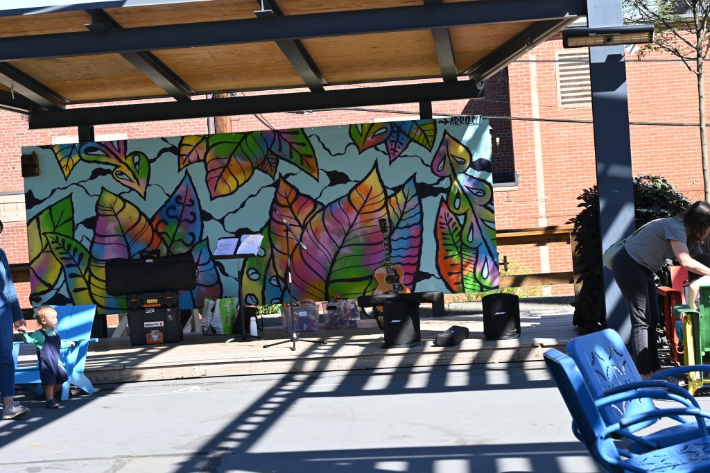 It looked like they were setting up to play a set so this was where I could get the mural before they finished. But I know a place to go if I want to hear a live band. (Two Thumbs up.)