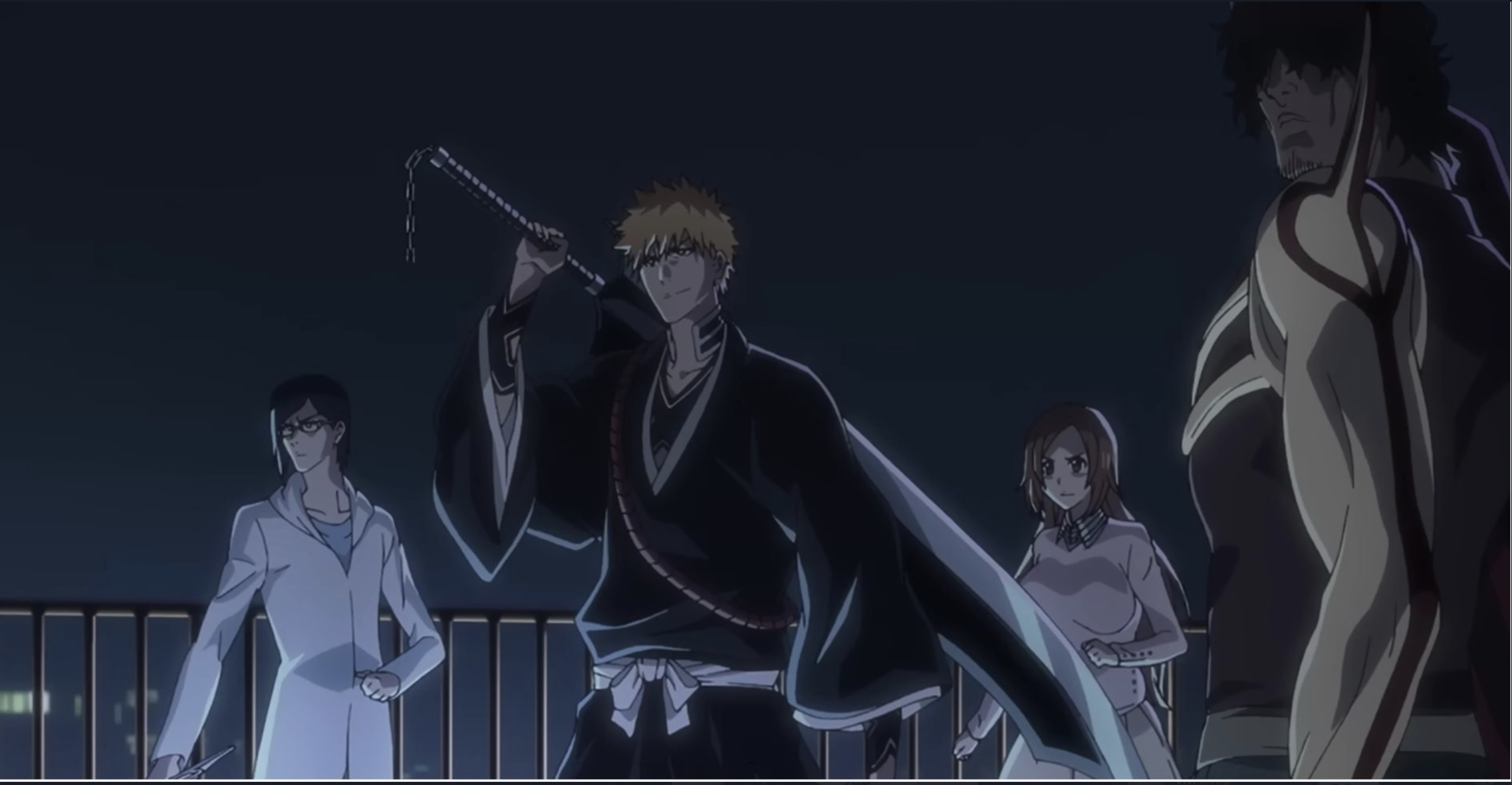 - The Substitute Shinigami and His Crew – Yuki is out of his depth and that was evident from the very beginning. A trembling Yuki reaches for his own Zanpakutō and mentally asserts that he has to do this for her, but is interrupted when the first Hollow attacks him from behind, drawing a large amount of blood and resulting in Yuki slamming into the railing at the edge of the rooftop. He wonders if he is going to die while the Hollow rears over him and prepares to attack once more. However, the Hollow is cut in half when a Getsuga Tenshō hurtles across the rooftop. As the other Hollows turn to look at this, a Heilig Pfeil rockets through the air and cuts off the hand holding Shino and Orihime technique is seen healing both Shino and Yuki. (Healers deserve more respect.) Orihime informs Yuki that she will finish healing them when the battle is over as Ichigo confidently walks forward to join his friends with Zangetsu, over his shoulder and declares that they should finish this quickly, leaving Yuki speechless. ( Me. He left me speechless also.) In response to this, the remaining three Hollows roar loudly, which results in dozens of other large Hollows emerging from between the nearby buildings and approaching the rooftop that they are located on. Orihime responds to one of them reaching for her by initiating Shiten Kōshun in front of herself, stopping the Hollow in its tracks and blowing it back into two others with the rejected force. Upon seeing this, Sado leaps up with his Fullbring, Brazo Izquierda del Diablo, and performs La Muerte by punching the Hollow hard in the stomach.The Hollow and the two others behind it are blown back several hundred meters into the side of a building, where they are destroyed on impact as a massive skull forms in the wall they hit. When two other Hollows attempt to attack Ichigo, Uryū destroys them with a single Heilig Pfeil each and skates around with Hirenkyaku as he obliterates several more before running up the side of a billboard, leaping into the air, and firing Licht Regen downward while upside down, resulting in half of the remaining Hollows being blown apart. (He was always trying to outdo people. I had a friend that loves her some Ishida…) An awestruck Yuki fails to notice a Hollow reaching for him from behind, only for Ichigo to intercept the Hollow’s hand with Zangetsu and promises to take them all on prior to activating his Bankai, Tensa Zangetsu, in a large explosion of Reiatsu and firing a black Getsuga Tenshō that engulfs the remaining Hollows in a massive explosion. In the aftermath, with Yuki questioning who he is, Ichigo introduces himself as a Substitute Shinigami. Some time later, Yuki loses consciousness. I was hype to see everyone and the music in the background does it for me. I still love it. It is like when I first watched it all over again.