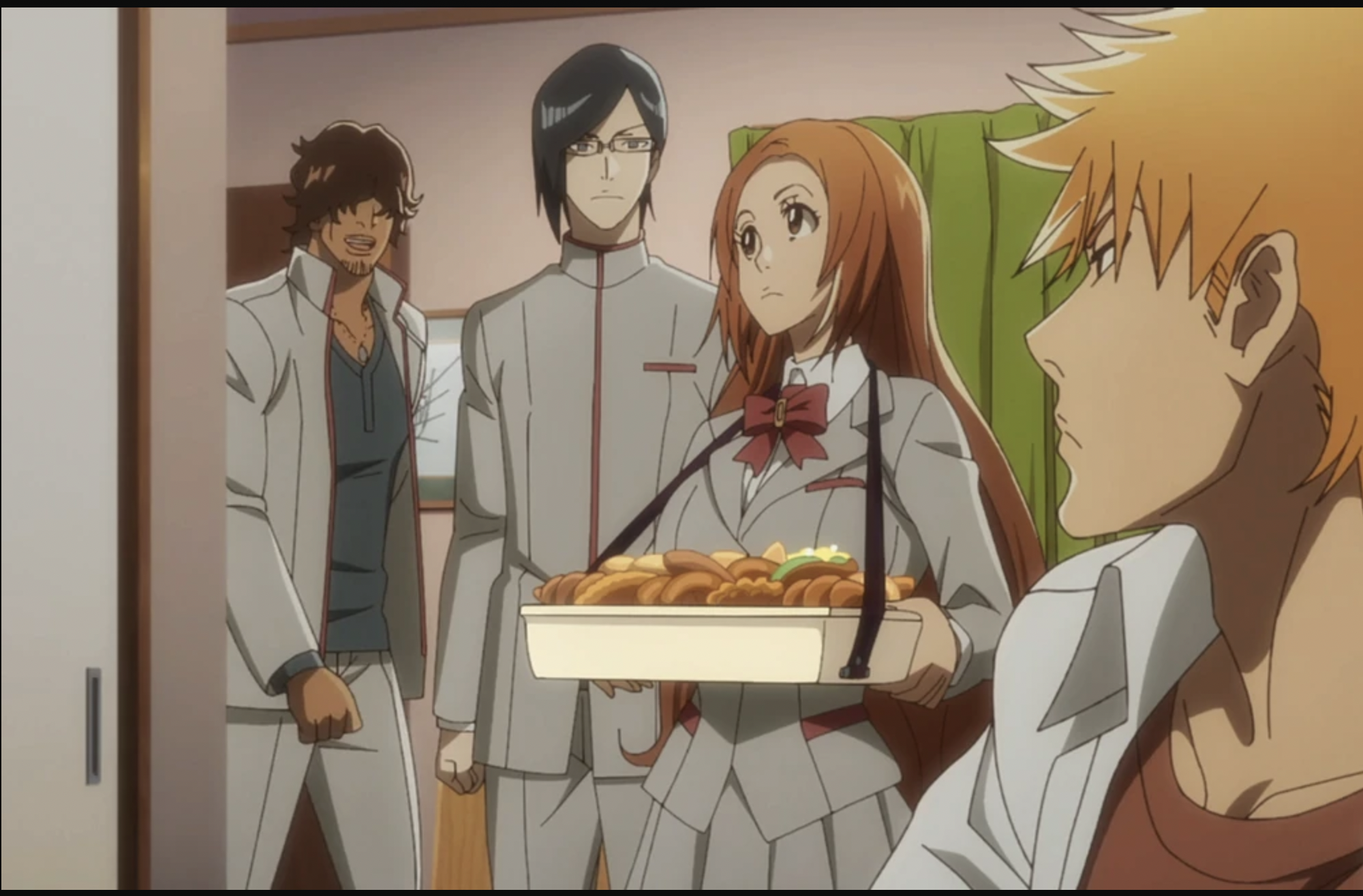 - The Kurosaki Clinic – Everybody heads to the Kurosaki Clinic at one point or another. Gotta love Ichigo teasing Orihime about her bread. An old running gag is everyone gathering in Ichigo’s bedroom. Upon finding himself resting in Ichigo’s bedroom at the Kurosaki Clinic, Yuki looks over to Ichigo, who tells him that he is free to leave if he is awake. Orihime shows up with Sado and Ishida… crowding Ichigo’s bedroom and it doesn’t take long before Ishida and Ichigo get into an argument. An initially dazed Yuki screams in astonishment once he recognizes Ichigo as the Substitute Shinigami he met last night, with Ichigo deducing that this delayed realization is why he was so unresponsive until now. (Leave it to Kurosaki to be nonchalant about a man who is just coming to.) However, Ichigo clarifies that their first meeting took place two days ago and that Yuki has been asleep for over a day, leading Yuki to frantically ask him about Shino’s condition before Ichigo hands him a plate of breads to sample. Yuki explains that he does not have time for this and inquires once again about Shino’s condition just before the latter walks into the room. Suddenly, when Ichigo asks for Yuki’s name, Asguiaro Ebern lands on Ichigo’s bed and introduces himself. (Sir… who are you? Who let you in here? WHY ARE YOU ON MY BED????) Ichigo demands that Ebern get off his bed and repeats this at Ebern’s request, only for Ebern to refuse. Upon hearing this, Ichigo kicks Ebern hard in the face, sending him flying out of the window that Orihime quickly opens behind him as Sado questions who he was and Uryū infers that he is probably an Arrancar due to the mask fragment on his face. Grabbing his Substitute Shinigami Badge, Ichigo promises to drive Ebern away and enters his Shinigami form. (Dude deserved to be kicked in the face.)