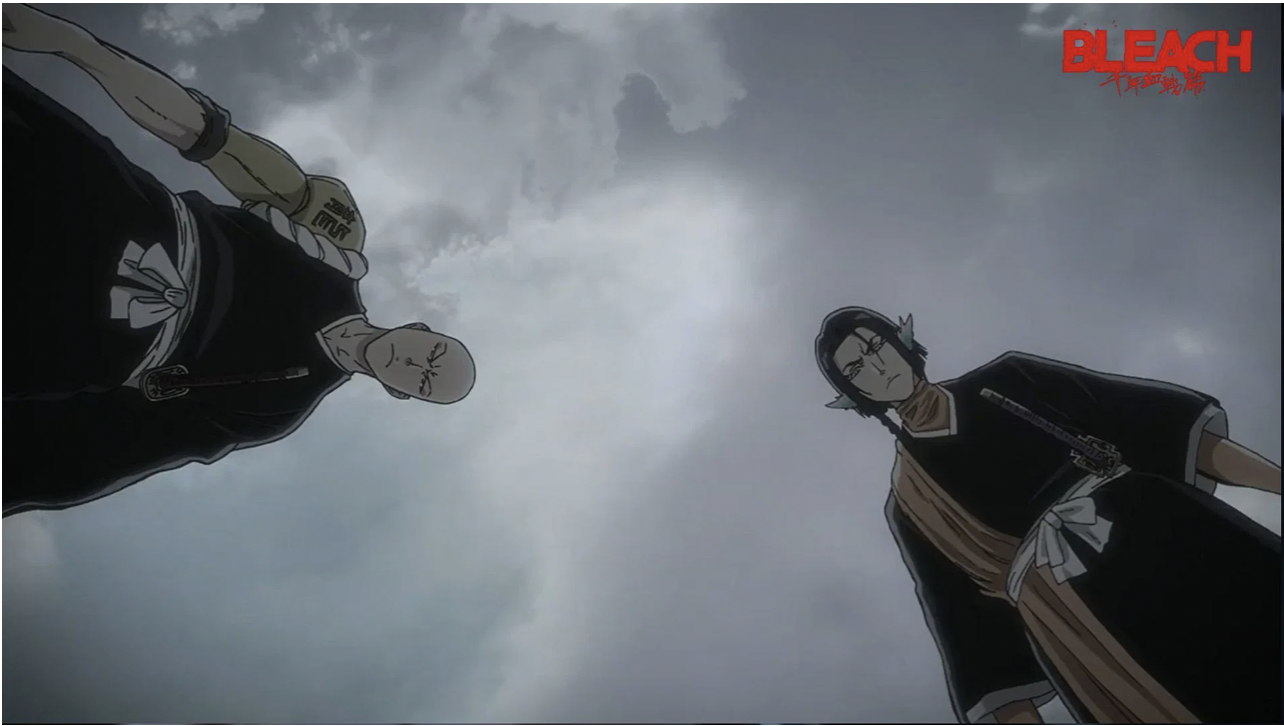 - Ichigo vs the Quincy – Ebern fires several blasts of Reishi at Ichigo, who evades and cuts through them with Zangetsu as he mentally struggles to reconcile Ebern using a Quincy artifact despite looking like an Arrancar. He wonders what the hell is going on… Ichigo continues evading blasts from Ebern, who pursues him around and underneath the central bridge as he questions if this is really the extent of Ichigo’s power. Noticing that Ebern has been taunting him like this and encouraging him to use his Bankai, Ichigo stops to cut one of the blasts in half, leaving them to explode in the air behind him, and decides that he has no choice but to play along since he does not know who Ebern is or what he wants here before readying Zangetsu. Bankai it is… I mean what other choice does he have? Ichigo prepares to activate his Bankai, to Ebern’s delight.. (he was too delightful for my liking…) and this scene is cut between what is happening with Yamaji… And that has to be the best way to do it. The audience hears something and knows something that Ichigo doesn’t… It builds suspense. As Yamamoto sees that the individuals got away and a badly wounded Chōjirō reveals that there is something he must tell Yamamoto…Chōjirō tells Yamamoto that the enemy can do something to their Bankai just as Ebern pulls out a Medallion and activates it, releasing a surge of energy around him that forms a massive X in the air, which he declares will be the end of Ichigo’s Bankai. After activating Tensa Zangetsu, Ichigo is startled by the activated Medallion, which releases several beams of light to envelop him while Ebern begins reciting a chant in German. However, despite the left arm of his longcoat beginning to crack and break off into the air from the effects of the Medallion, a yelling Ichigo manages to destroy the beams of light with a slash from his sword, to Ebern’s disbelief, and fires a Getsuga Tenshō directly at Ebern, engulfing him in a gigantic explosion. In the aftermath, a badly burned Ebern emerges from the smoke and demands to know why Tensa Zangetsu did not disappear. When Ichigo demands answer… Ebern escapes from his fight with Ichigo by creating a Shadow to transport himself. He leaves Ichigo to wonder what this was since it was not a Garganta. Oh… It is gonna be on and popping… Soon.