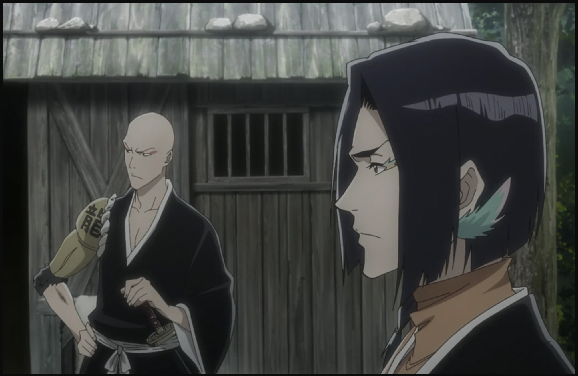 - Spirits missing from the Gotei 13 – In the west 64th district of the Rukongai, 11th Division 5th Seat Yumichika Ayasegawa comes to a halt in a village and muses that there really is no one here while 3rd Seat Ikkaku Madarame asserts that no one from the Rukongai could simply disappear under the Gotei 13’s surveillance, leading Yumichika to note that there were still a few left when they received the report. When Yumichika comments on the entire village disappearing like this being almost supernatural, Ikkaku refuses to accept such an explanation prior to one of the subordinates bringing them to a set of footprints in the dirt that converge and suddenly cease. After confirming Ikkaku’s observation that there are only marks of bare feet and sandals, Yumichika deduces that the residents of this village abducted each other. While these two have no clue what is happening.. I am sure that at least 2 people have figured out what is going on here. (Bleach characters tend to have long histories and know why things are occurring without letting us know.) Mayuri views a large screen displaying several zones of the Rukongai marked as clear.