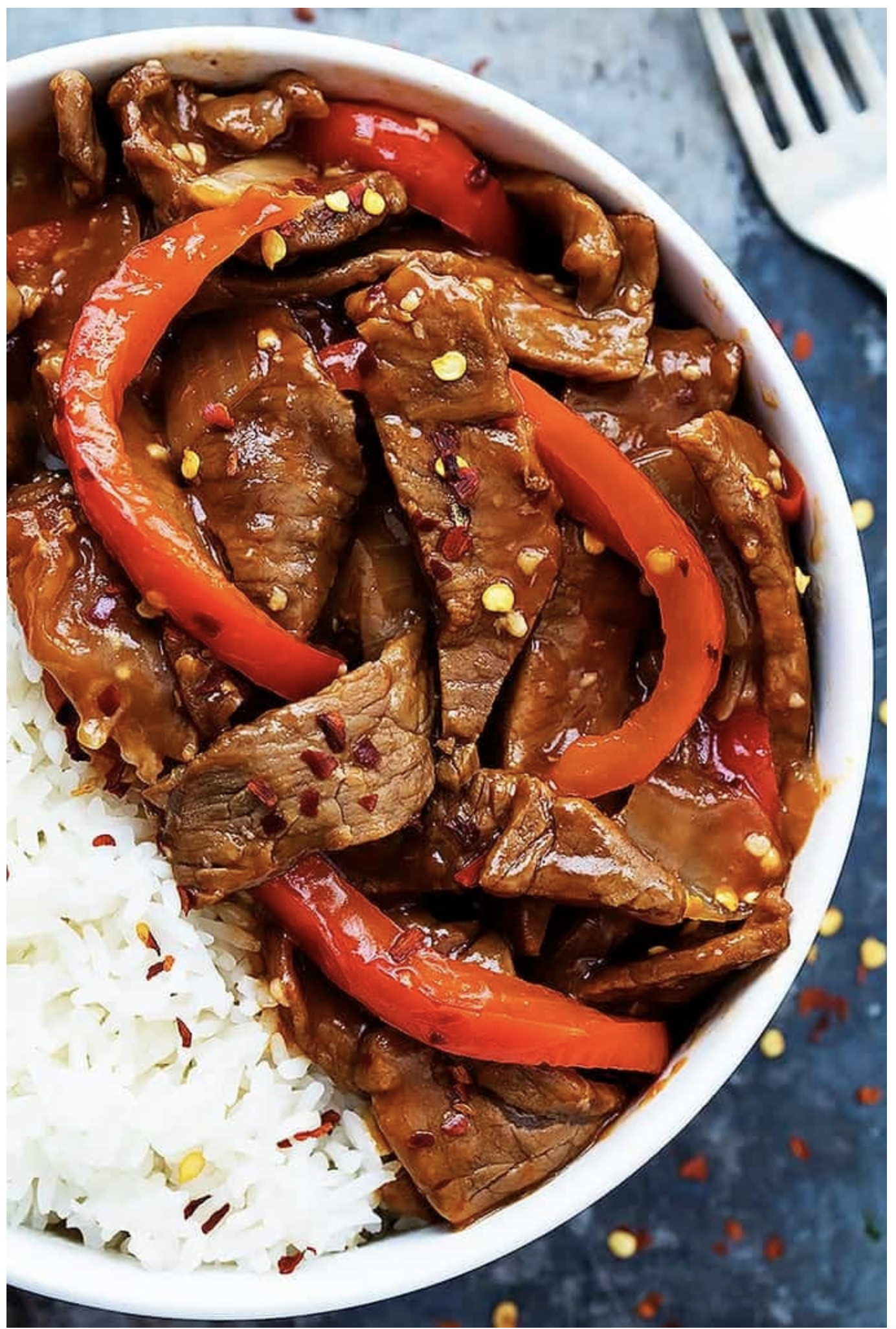 Needless to say… We weren’t able to find something to suit our particular needs so we turned to the next best place. PINTEREST. I have a few boards dedicated to food. Don’t judge me. But we found a perfect one to try. Not to many ingredients. So this seemed like a great place to start. (https://www.lecremedelacrumb.com/sriracha-orange-beef/)